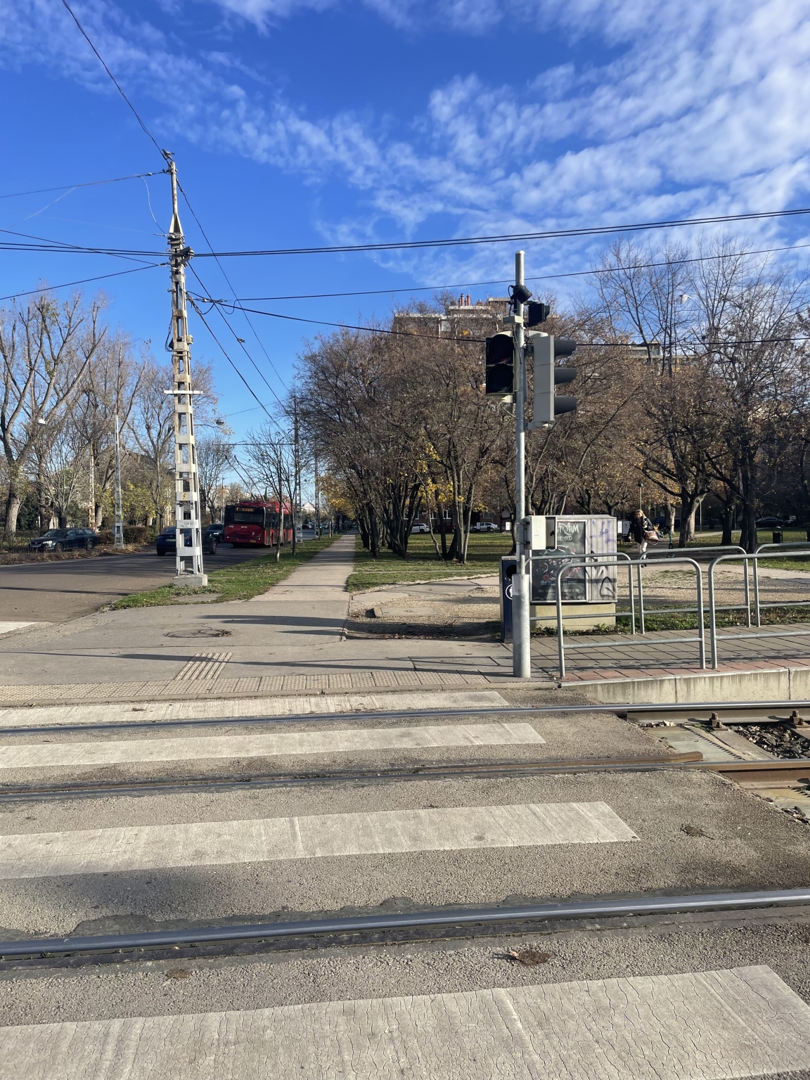 A Nagy Lajos király útja, Egressy út sarkán a zöld jelzés nem világít a zebránál.