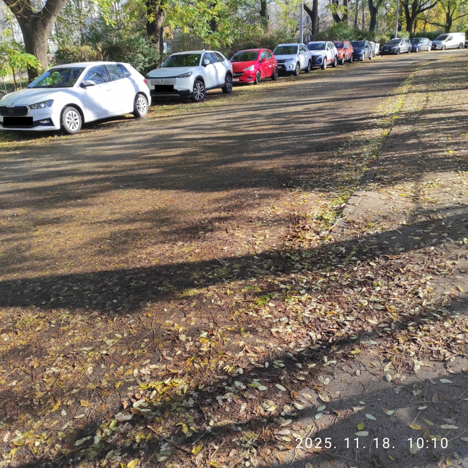 A Laktanya utcában a falevelek miatt csúszós az úttest.