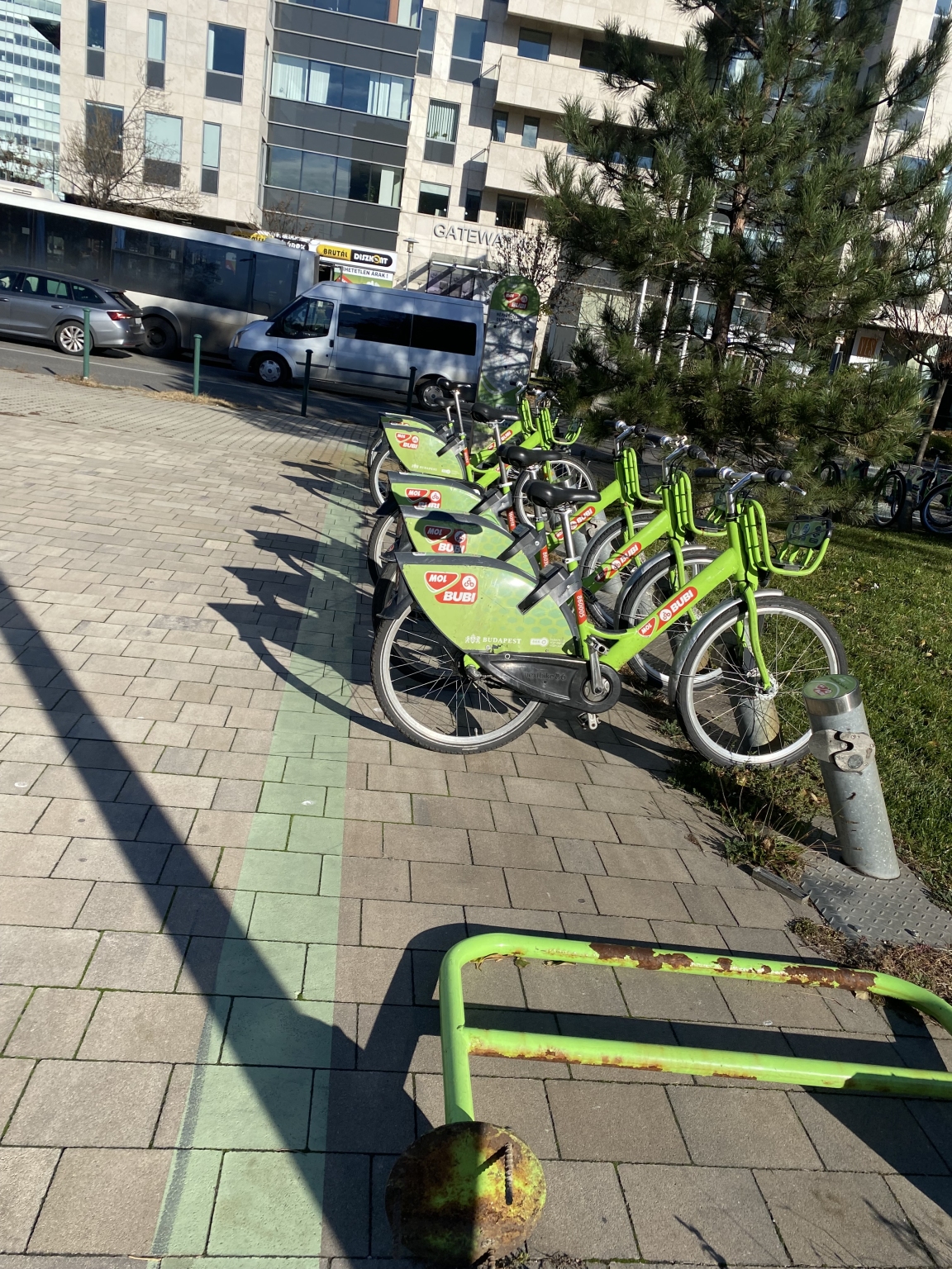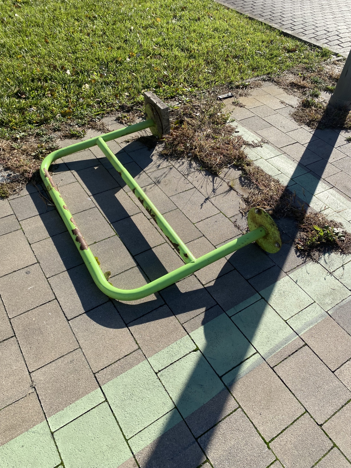 A Dunavirág utcai Bubi megállónál kiszakadt, es felborult a kerékpártámasz