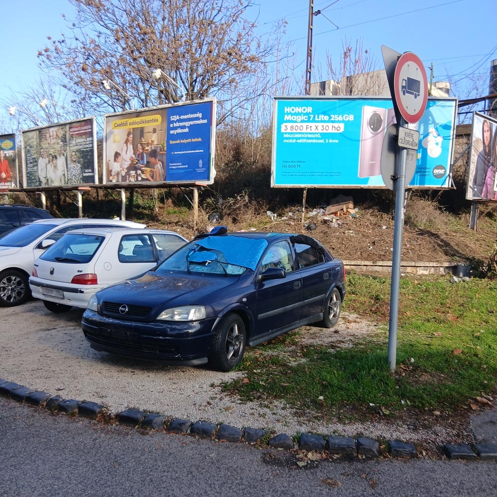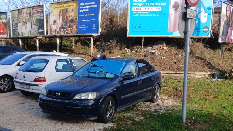 Forgalomból kivont autó foglalja a parkolóhelyet 24/7 Zugló vasútállomás mellett