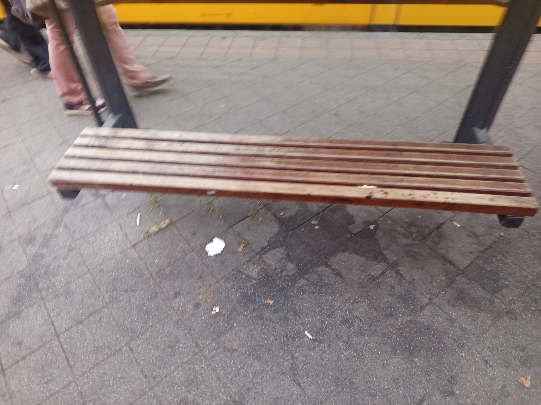 Négy nagyon megkopott pad a villamosmegállóban