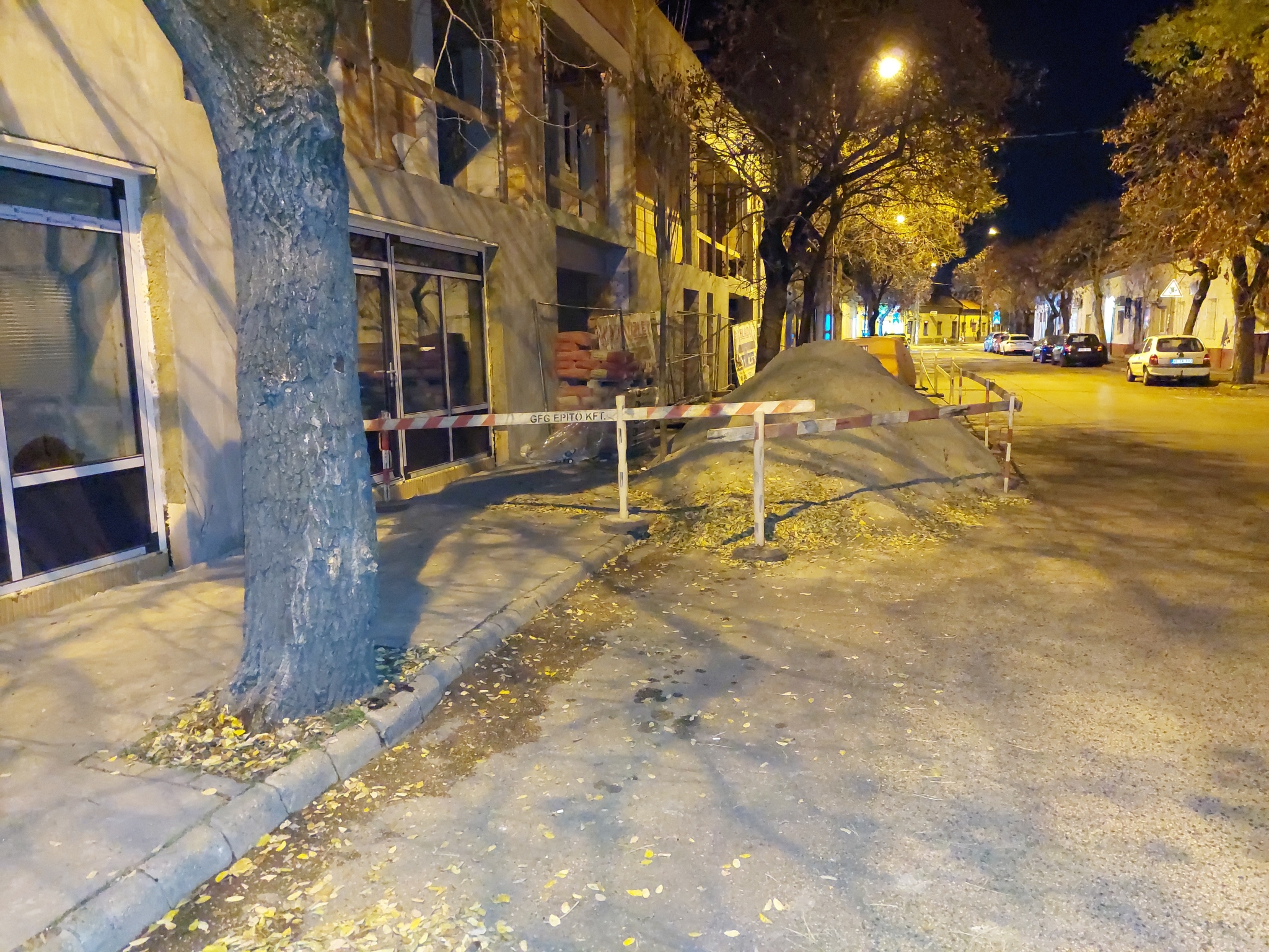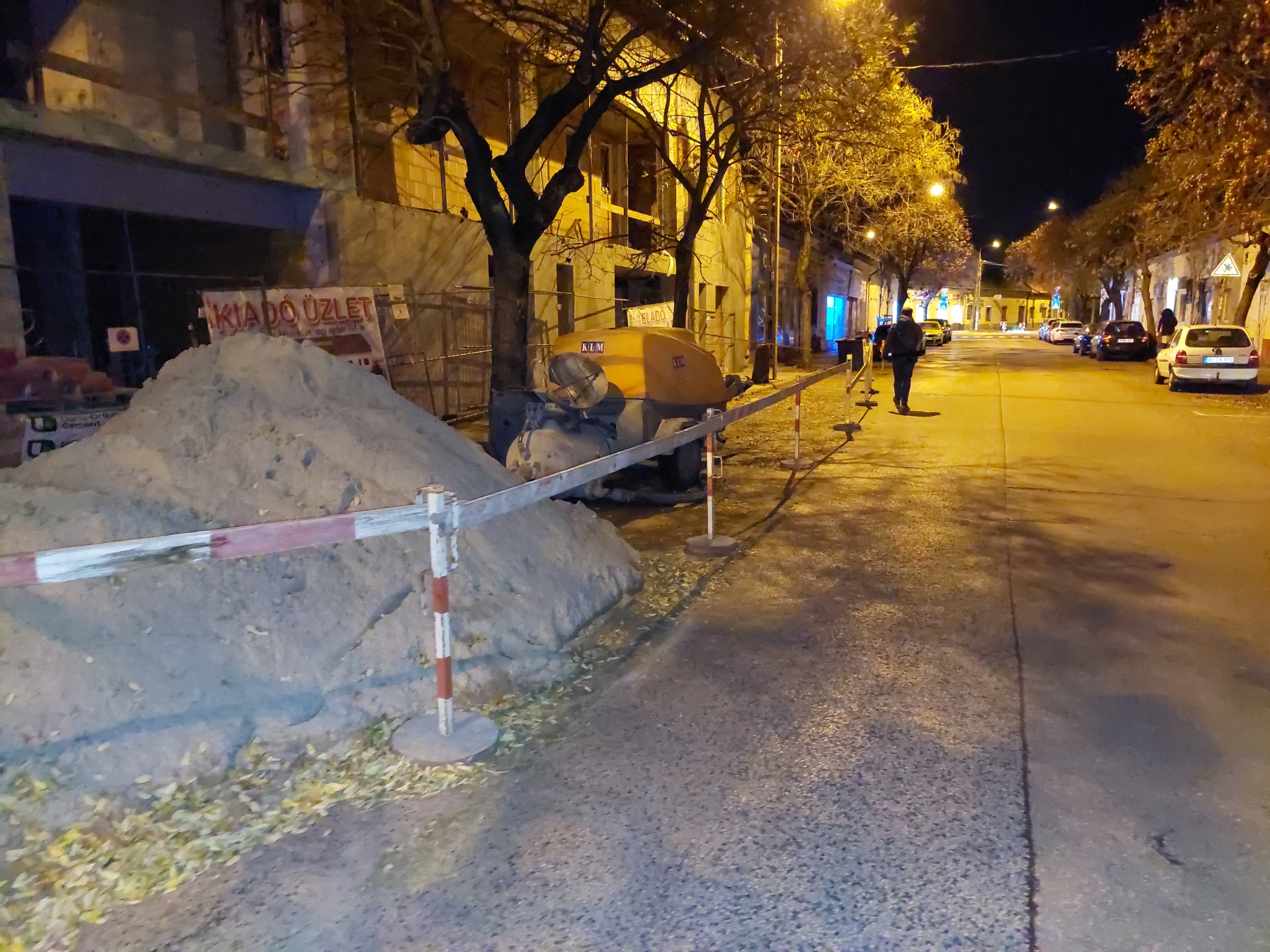 Újpesten a Temlom utcában hónapok óta zajlik egy építkezés. Eddig csak a parkolósáv volt volt szalaggal lezárva. Pár napja a járda és az úttest egy része is lezárásra került, úgy hogy erről semmilyen előjelzés (útszűkület, úton folyó munkák, sebességkorlátozás vagy gyalogosközlekedés a túl oldalon tábla) nem került elhelyezésre, továbbá a munkaterület elejénél hiányzik a sávos tábla és sötétben a sárga villogó. A munkaterületen ömlesztett anyagot tárolnak kalodázás nélkül, így azt az eső a forgalom alatt álló úttestre tudja mosni. Ez a kerékpárosok és a mototosok részére nagyon veszélyes tud lenni. A munkaterületet a gyalogosok csak a forgalom alatt álló úttesten tudják kikerülni.
