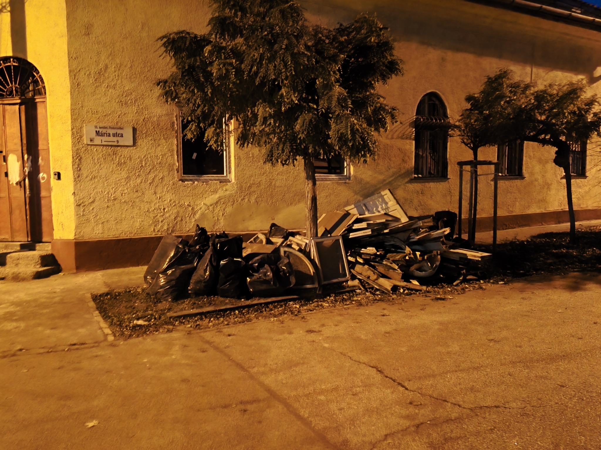 A XX. kerületben, a Mária utca és Szent Imre herceg utca sarkánál zajló felújításból származó sittet rendszerese az utcán helyezik el. Nem egyszeri, és nem átmeneti állapotról van szó.