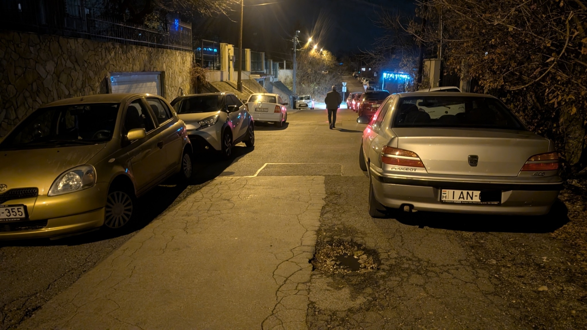 A Toronya utcában a kultúrháztól nem messze egy kátyú akadályozza a közlekedést.