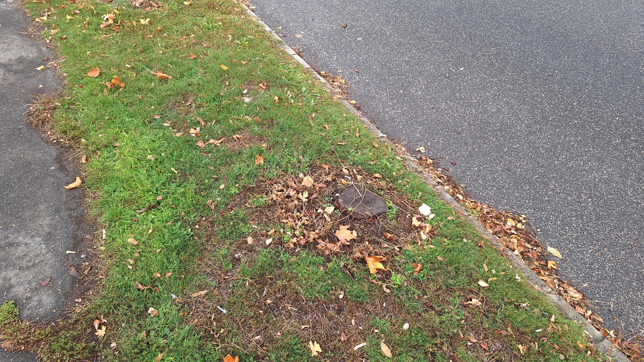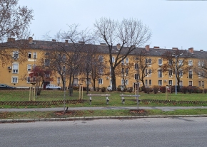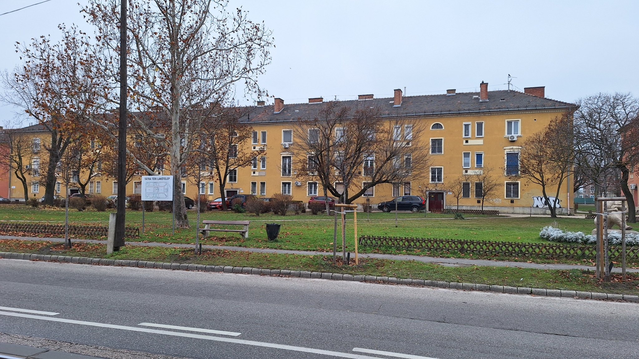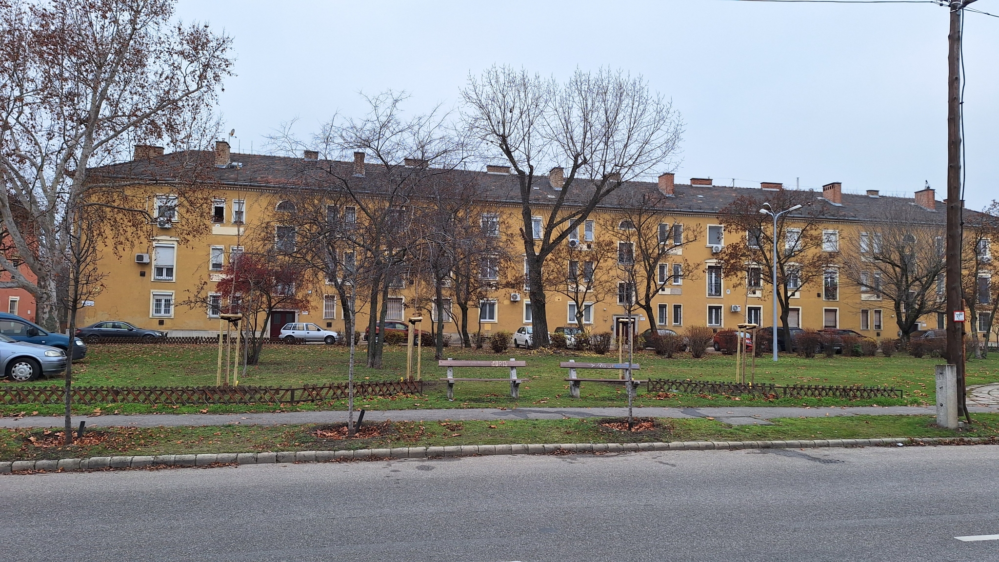 A Jókai Mór utca 88-90-el szemben az út szélén van egy régi fatuskó, illetve az itteni parkos területen facsemeték is hiányoznak.