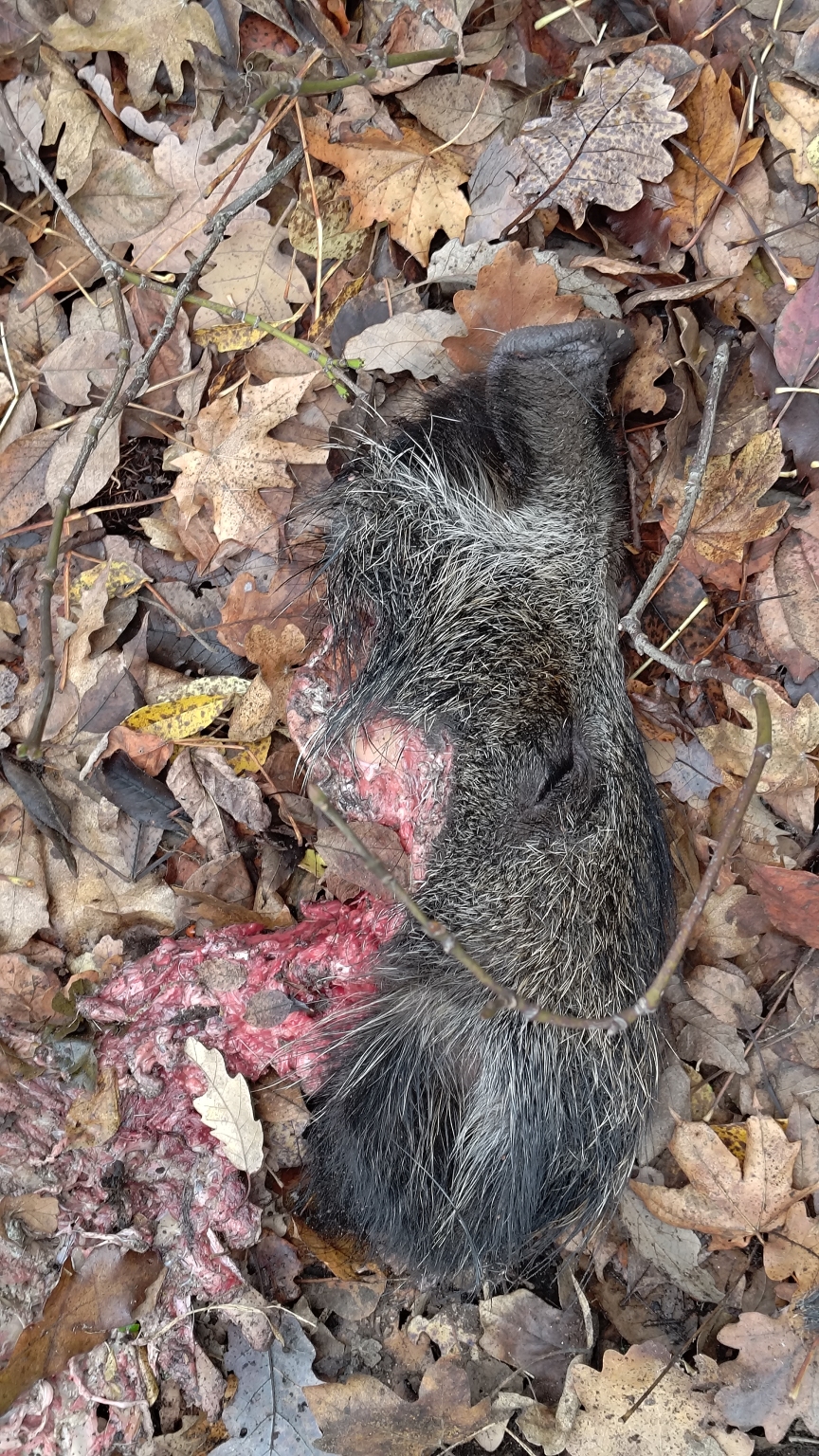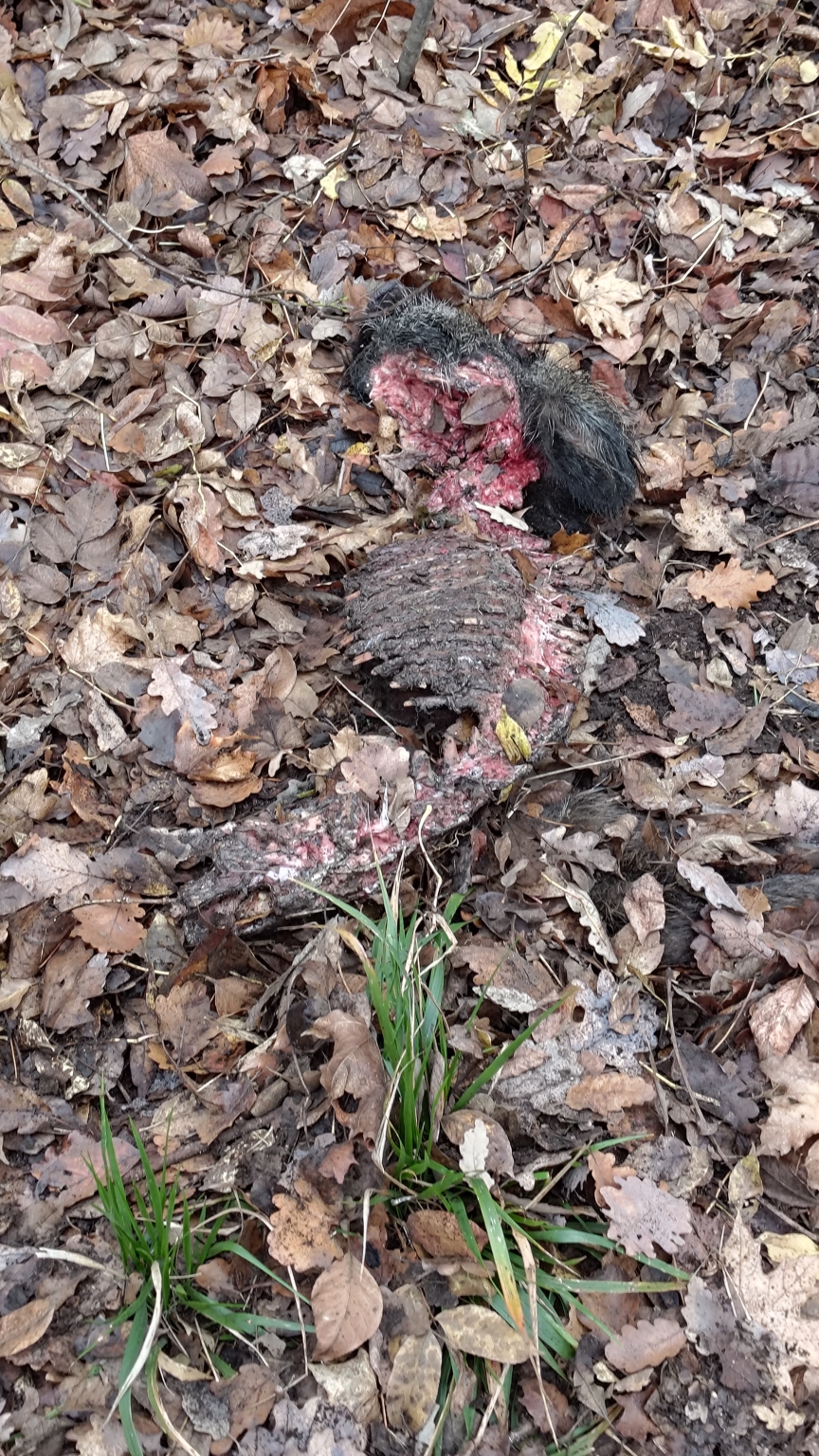 A csatolt képen lévő piros markernél egy elhullott vaddisznó (eléggé hiányos) maradványa fekszik a sétaúton.