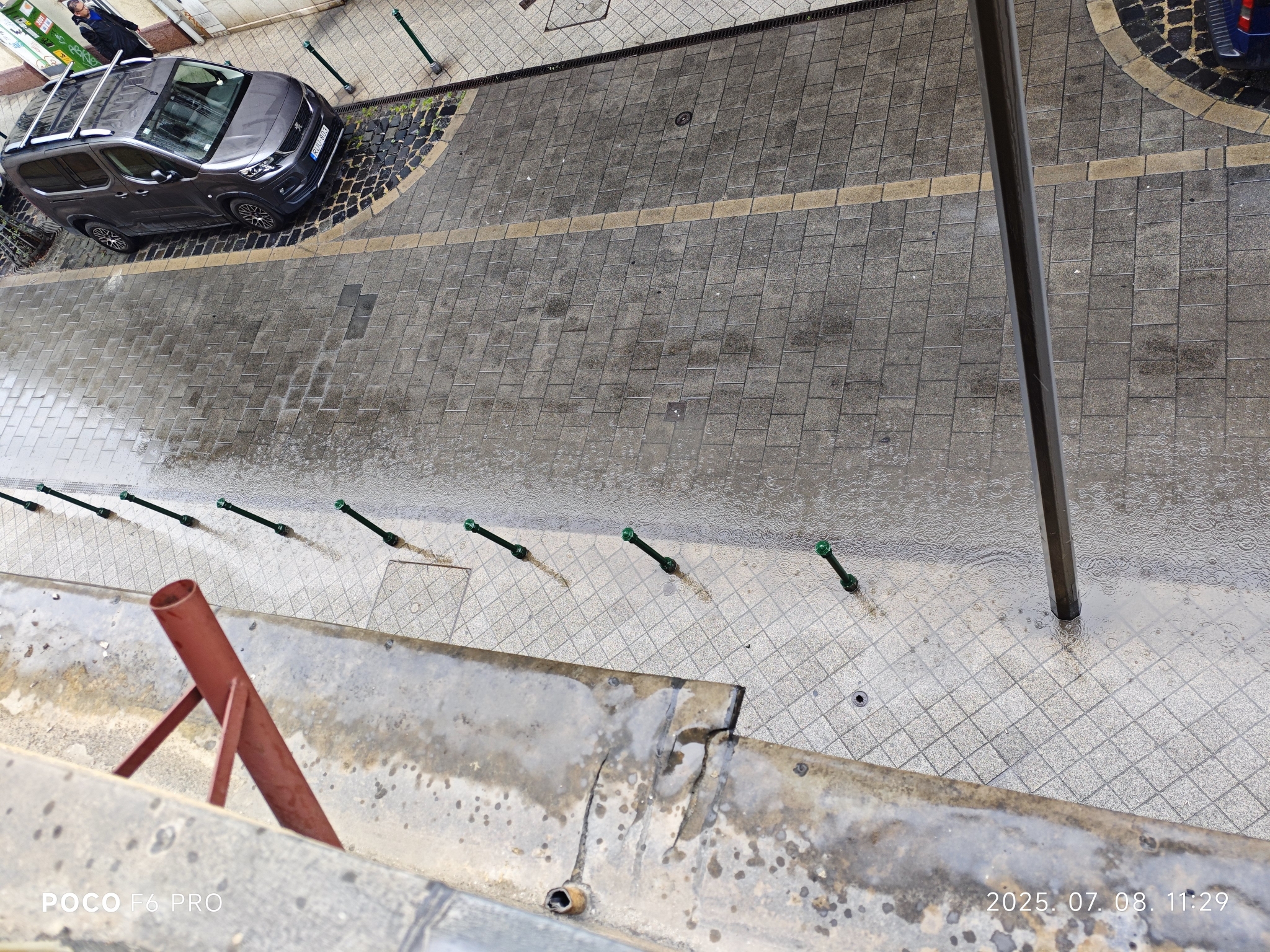 1085 Bp., Mária u. 23. előtt az utcai esővízelvezető csatorna el van dugulva már jóideje, esőzéskor az utca közepéig és kb 10 méter hosszan áll a víz, az autók felverik a vizet, nem lehet közlekedni. Ezt már jeleztük nyáron a kerületi közterületfelügyeletnek, remélem itt sikerrel járunk a bejelentéssel.