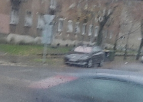 Tábla kidöntve. Sajnos jobb fotó nem tudott készülni, az elsőbbség adás kötelező tábla teljesen vízszintesen helyezkedik el.