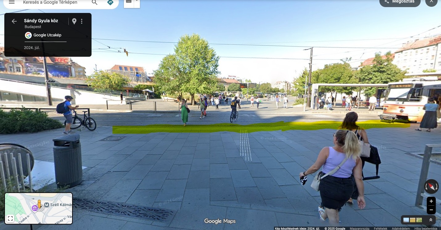 „A helyszínen található taktilis elemek a kiviteli terveknek megfelelően kerültek beépítésre. Az elemek esetében meghibásodást nem észleltünk. A jelenlegi kialakítás a gyalogos közlekedés során elvárható körültekintés mellett a biztonságos használatra alkalmas. A helyszínt a jövőben is figyelemmel kísérjük és amennyiben meghibásodást észlelünk a szükséges intézkedéseket megtesszük.”