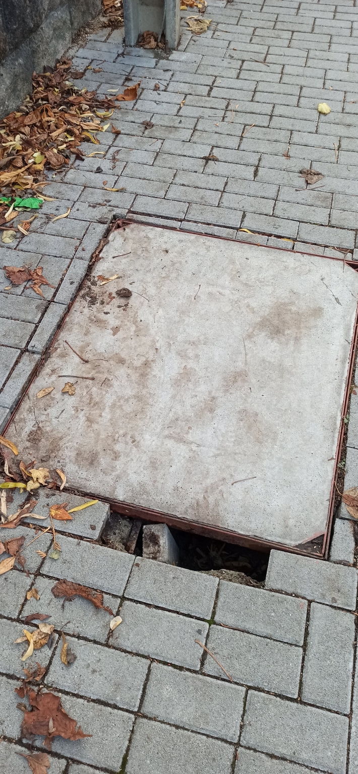 A 12. kerület Virányos út 26. sz. ingatlan járdáján hosszú ideje mozog egy beton fedlap. Nincs rajta jelzés, nem tudom, hogy milyen közműhöz tartozik. A két nappal ezelőtti fényképen látszik, hogy meglazult mellette a járda kő borítás, elkezdett beomlani.