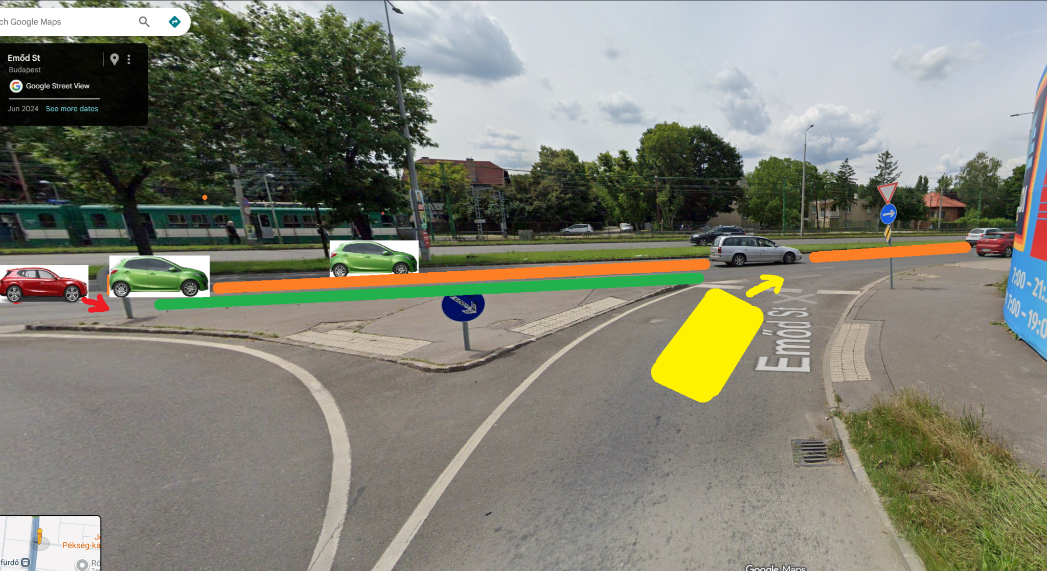 Az általam tapasztalt probléma, hogy mivel az Emőd utcából a Szentendrei útra felhajtáshoz nincsen se lámpa, se gyorsítósáv így könnyen baleset alakulhat ki amennyiben a Szentendrei út külső sávja üres és erre ráhajt az Emőd utcából egy autó, de ekkor a középső sávból szintén valaki kisorol a külső sávba. (lásd képeken)