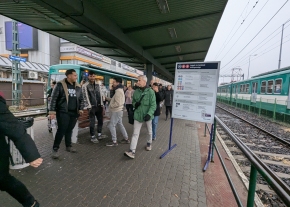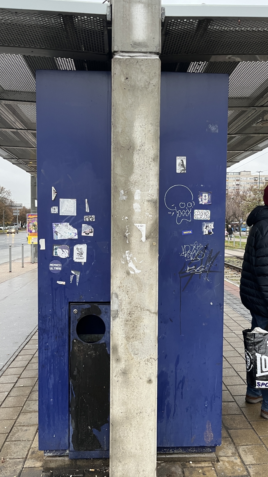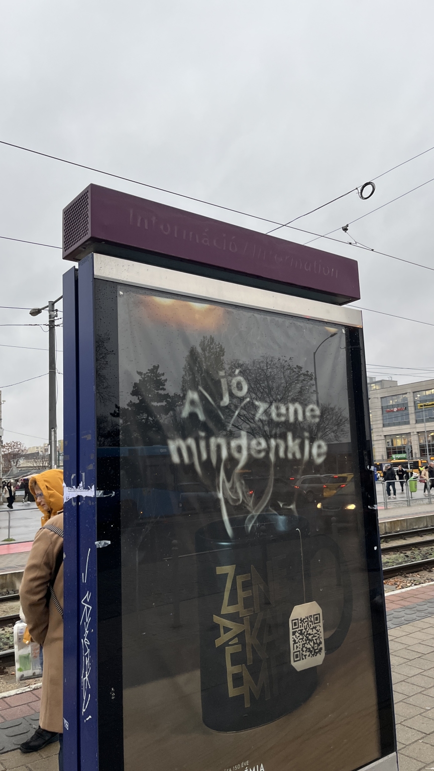 Az Örs vezér terén a villamosmegállók koszosak, a hirdetőtáblákról az Információ feliratok lekoptak.