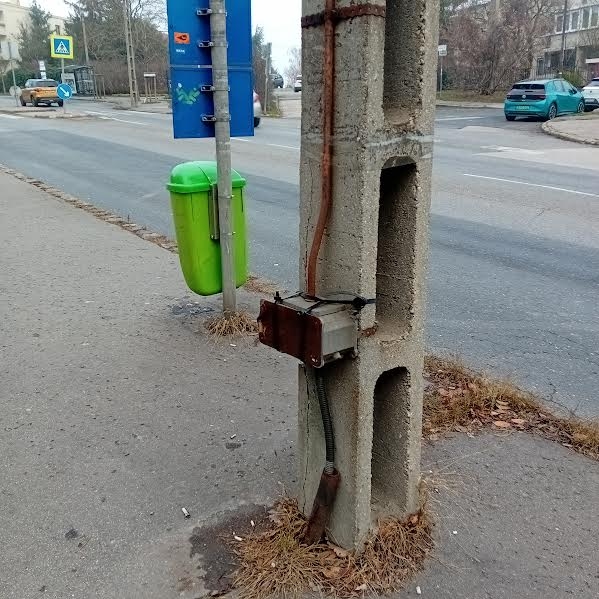 A 221-es busz vonalán (Széll Kálmán tér felé) a Pethényi úti buszmegállónál a beton lámpa oszlopon az elektromos biztosíték doboza nyitva van (gyerekek által is elérhető magasságban). Szerintem veszélyes lehet.