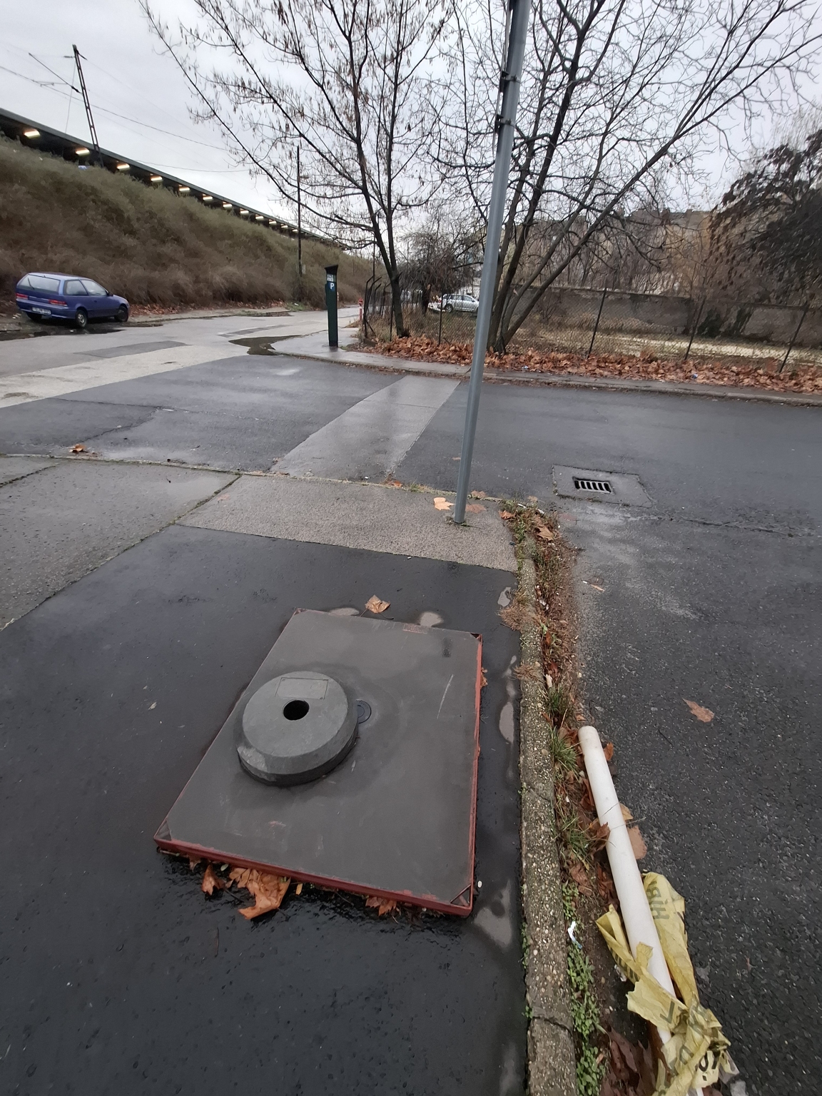 A Telekom aknafedele a javítást követően nem került a végleges helyére. Hónapok óta ez az állapot, mintha megfeledkeztek volna róla.