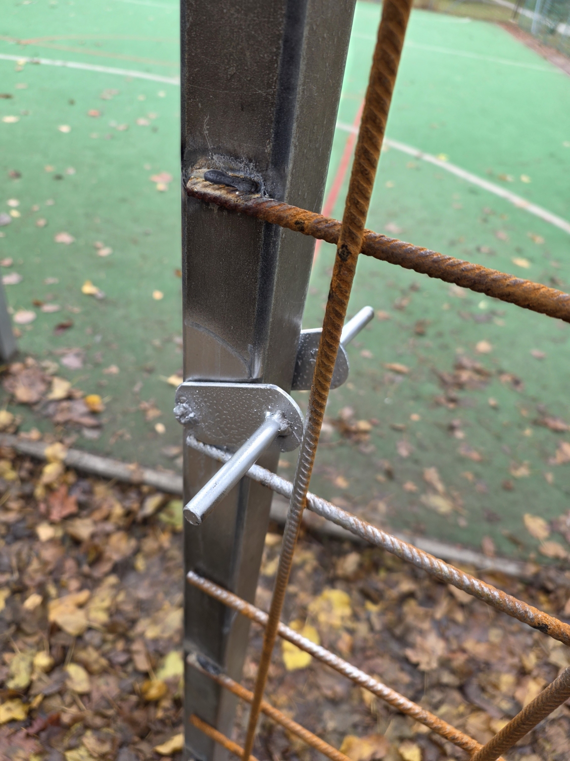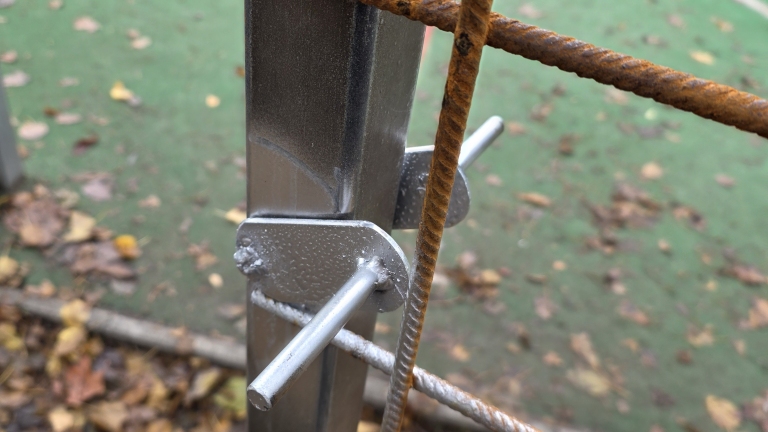 Az oszlopokra felhegesztett betonacél háló csak esztétikai probléma, a hegesztéseknél nem lett lefújva horgany spray-el.