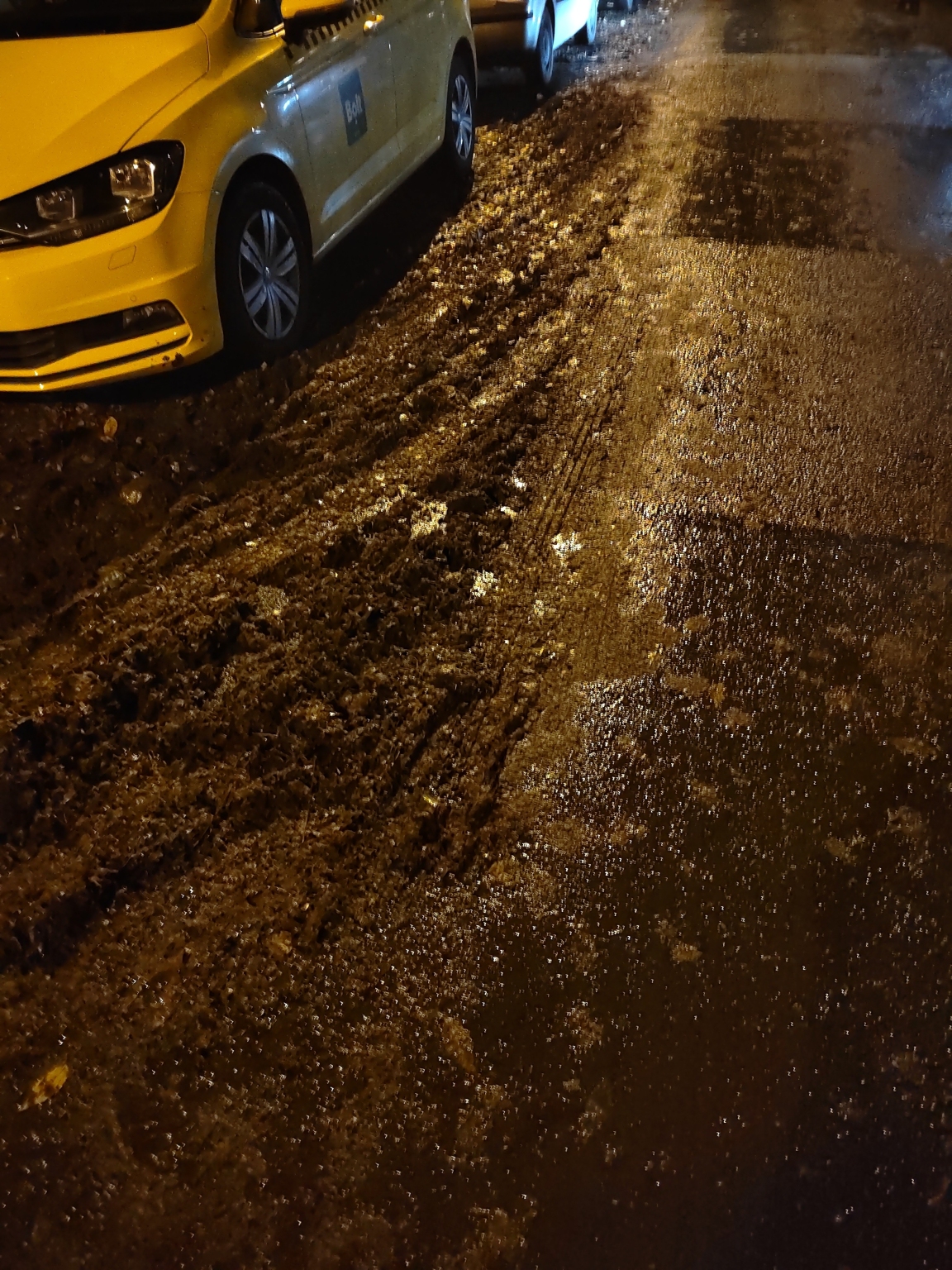 A lehullott falevelek bokáig ernek a parkolóban, a ráhuklott esővel pedig nyalkát, rothadó komposztot képez a parkolóban. Undorító és balesetveszélyes!!!