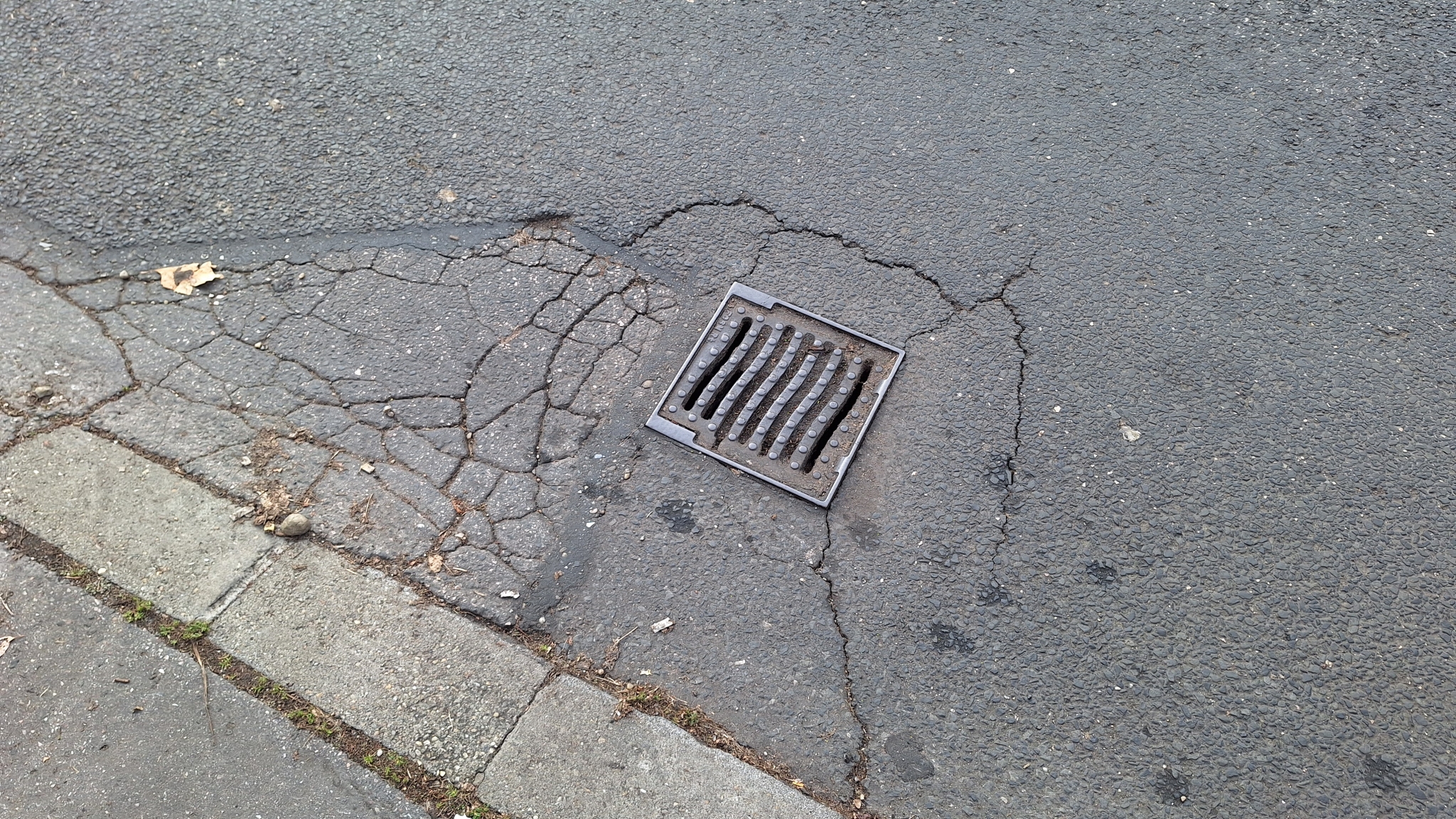 A Szent Imre herceg utca 77. előtti víznyelőrács el van tömődve.