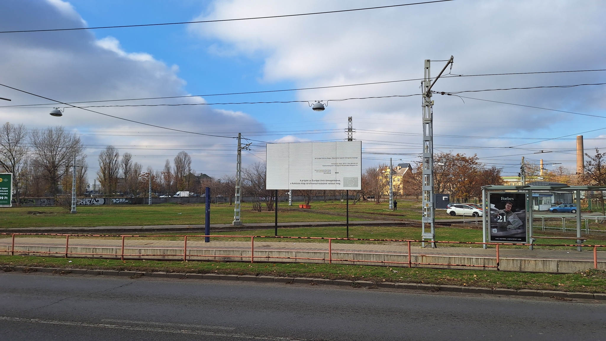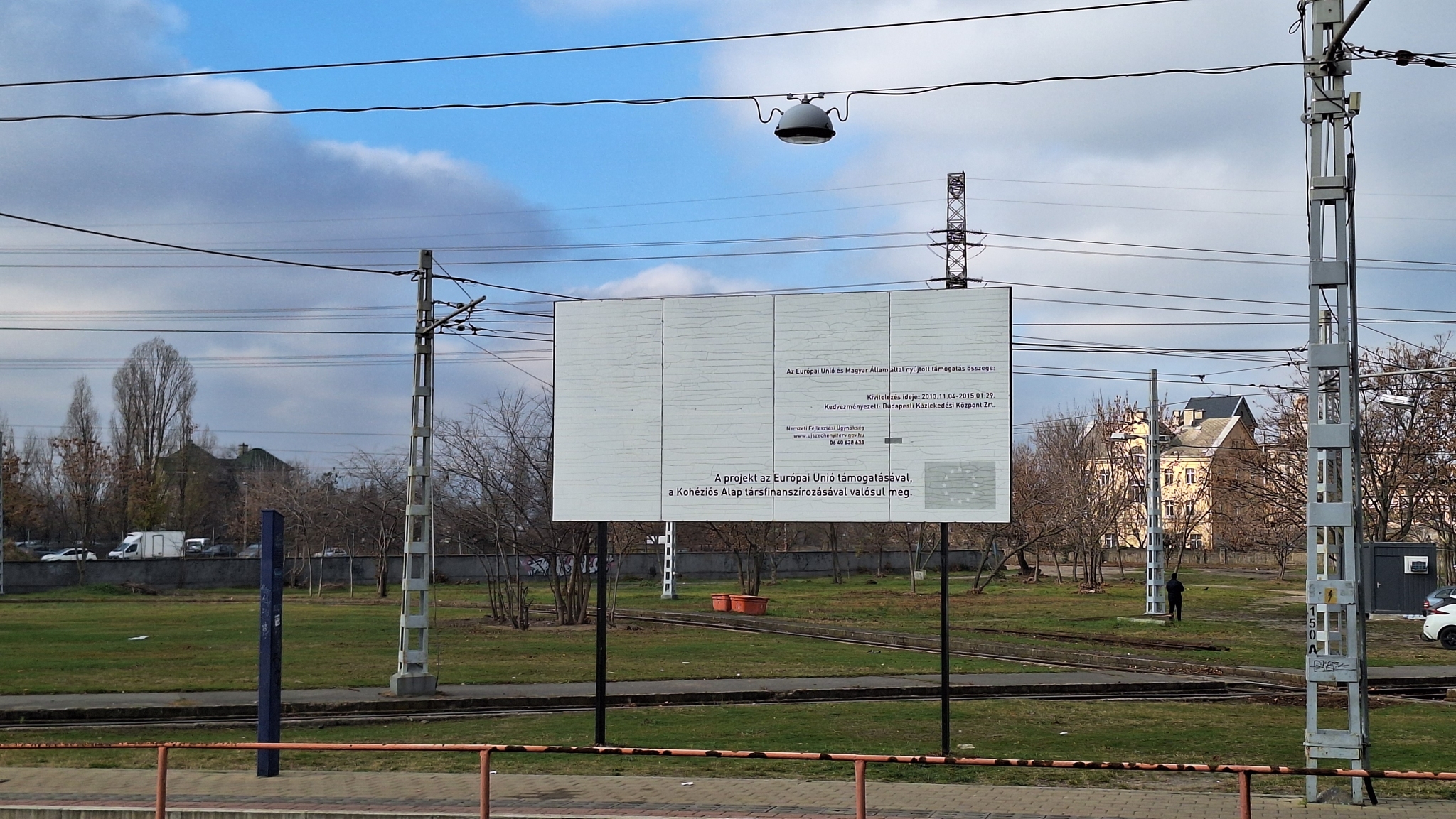 A Gubacsi út / Határ útnál lévő hurokvágány mellett áll egy több, mint 10 éves tábla az EU-s finanszírozásról. Mára teljesen lekopott róla a lényeg, a projekt neve, így időszerű lenne végre elbontani.