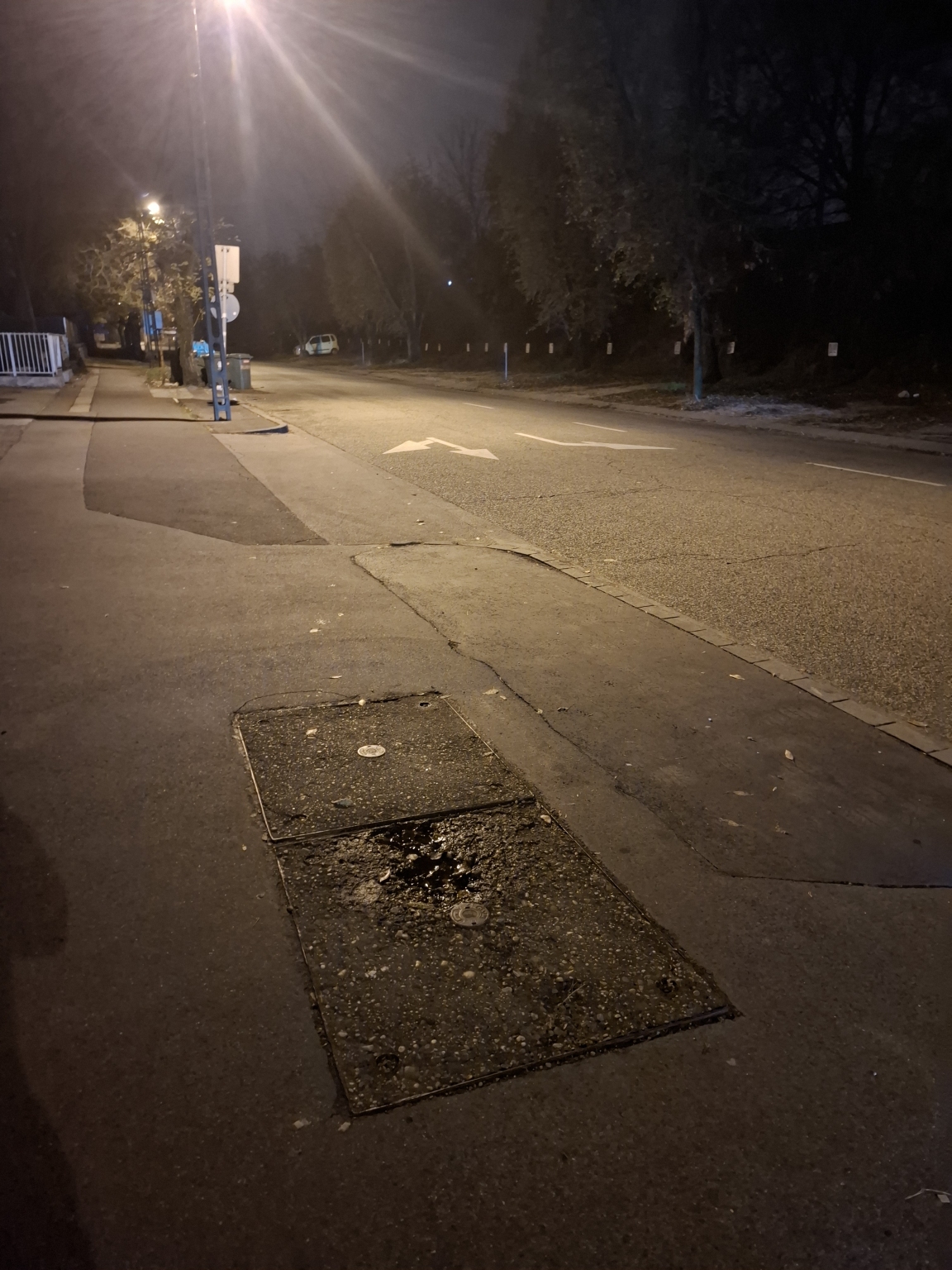 A Közlekedéai Hatóság épülete előtt az egyik fedlap sérült. Kérem javítsák!
