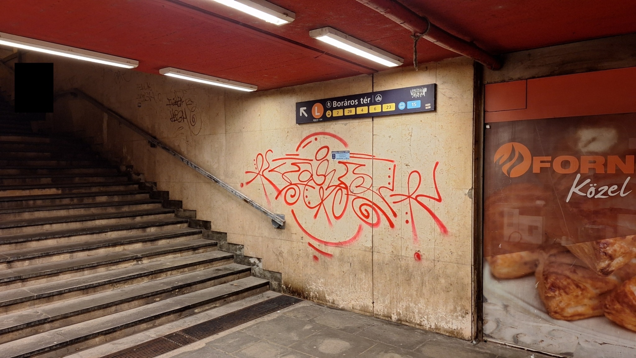 A Boráros téri aluljáró L lépcsőjének telefirkálták az oldalát.