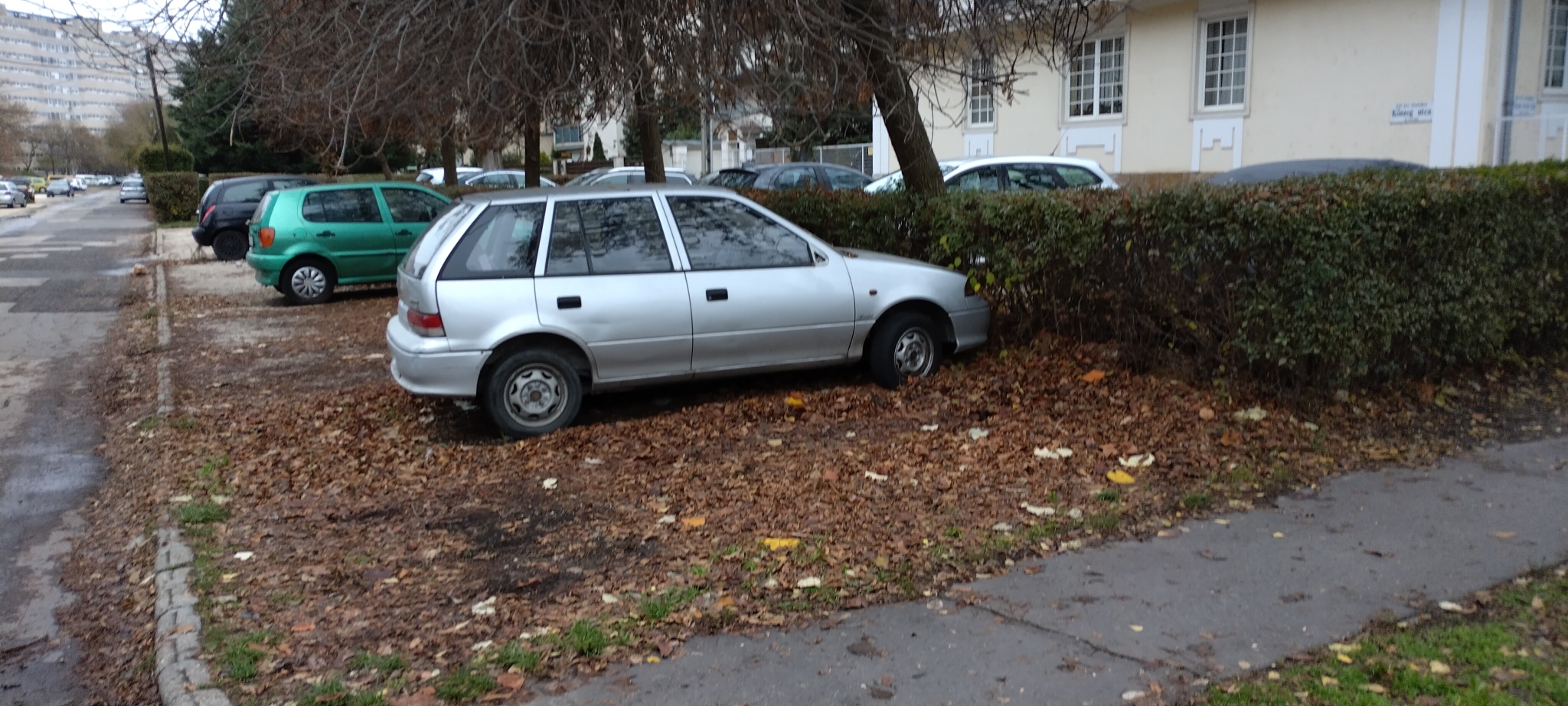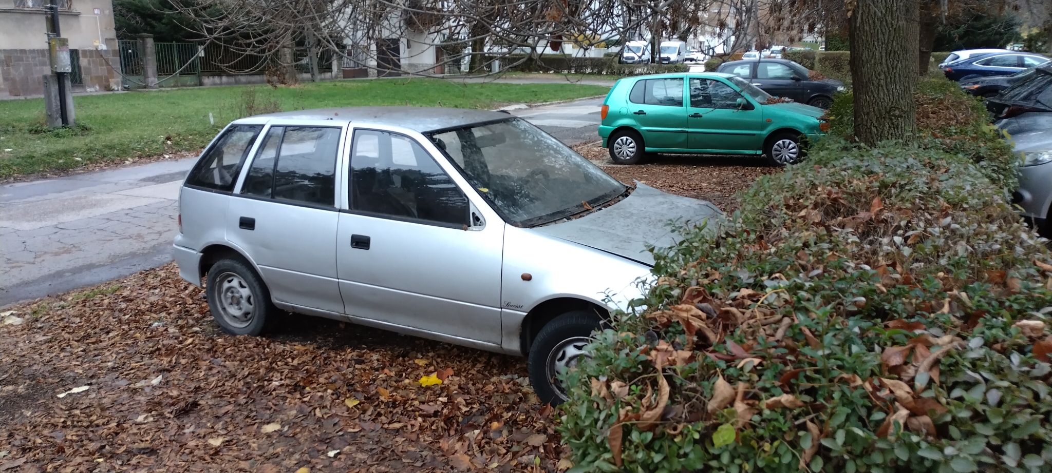 Elhagyott Suzuki gépkocsi parkol itt, belül ülések nélkül, forgalomból kivonva, kérem intézkedjenek.