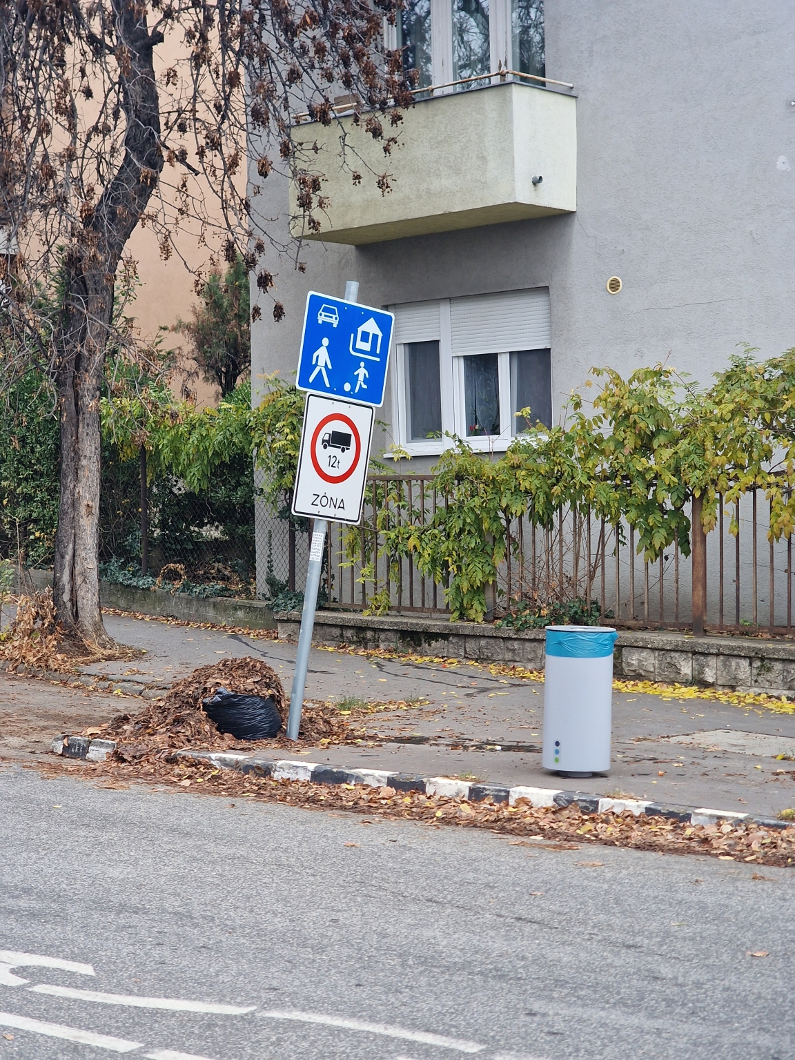 Zöldhulladék zsákban és még egy kupac zöldhulladék csak úgy a zsákhoz hordva a Pannonhalmi út 1-nél. Ezt így nem fogják elvinni.