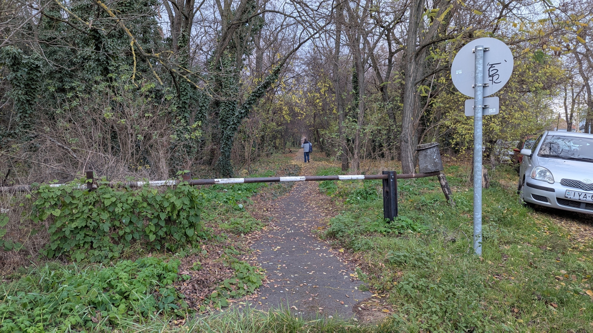 Tapasztalatom alapján gyakorlati szerepe és haszna nincs a fotón látható sorompónak, mert a HÉV peronja irányából nem lehet autóval behajtani, illetve maga a sétány is túl keskeny hozzá, ellenben az itt közlekedő embereket a sáron és buckákon való botladozásra kényszeríti az egyenes vonalú haladás helyett.