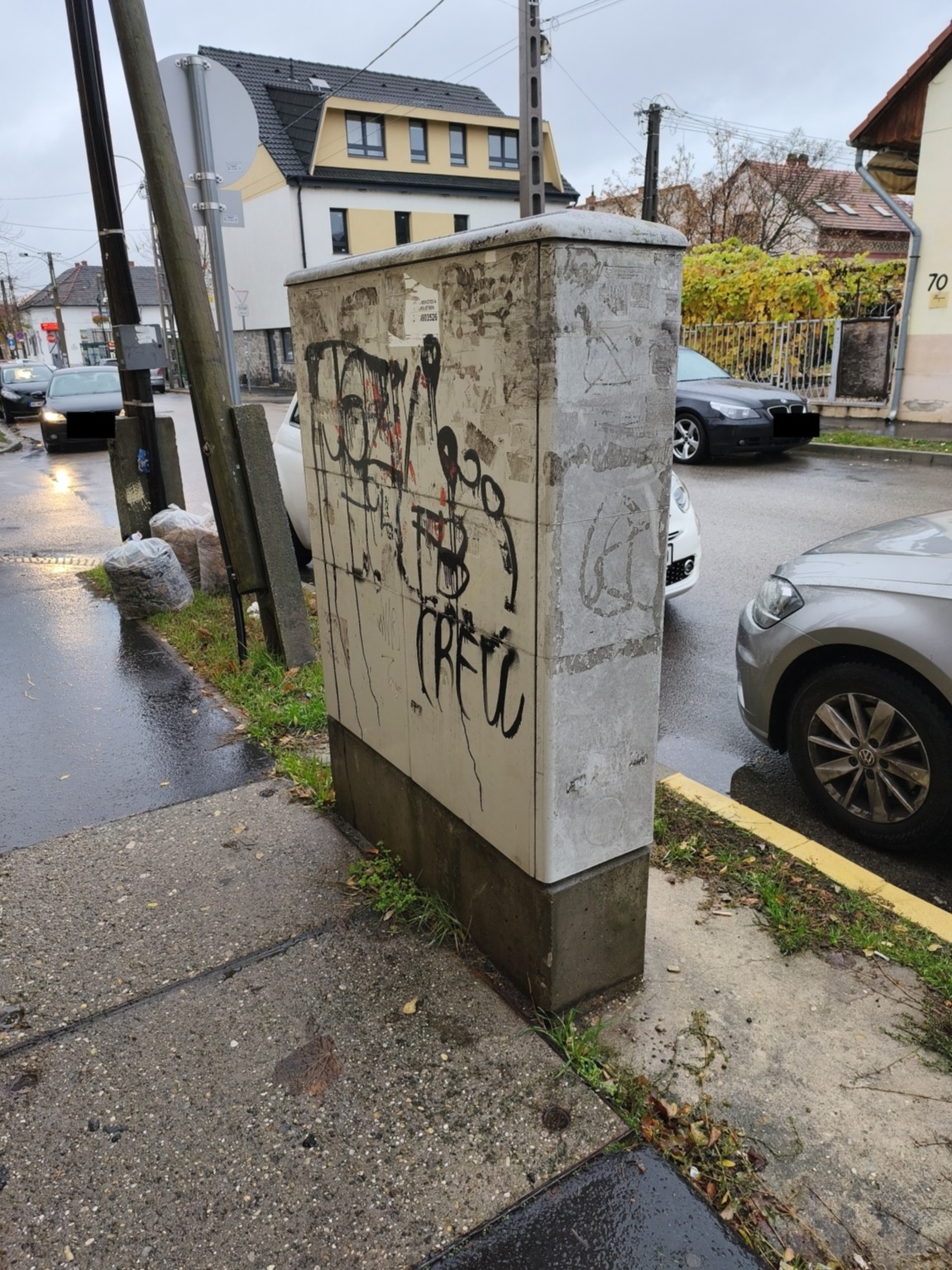 Összefirkált, koszos közműszekrény