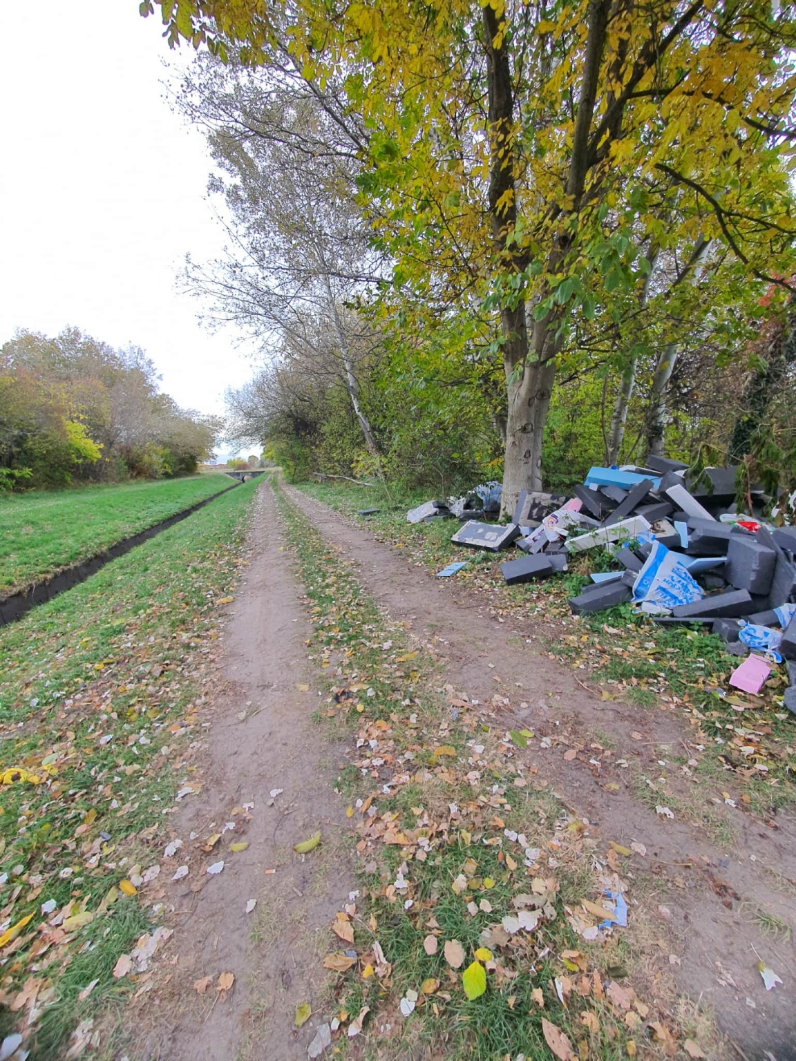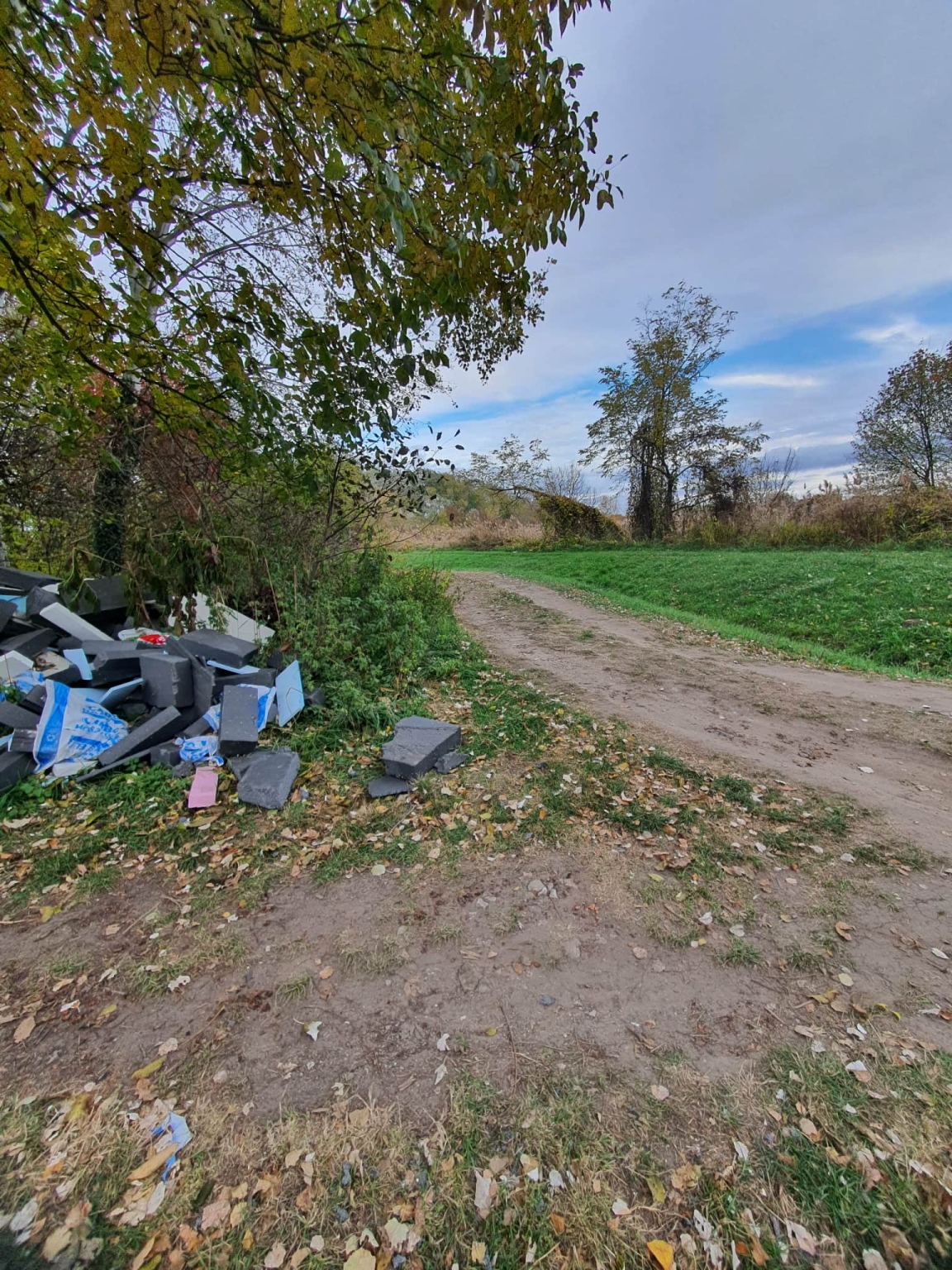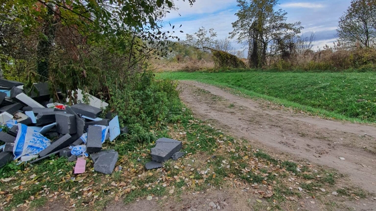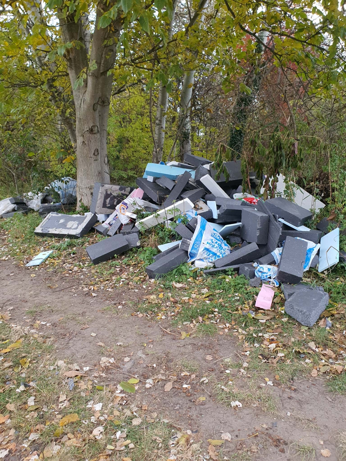 Illegális szemetelés. Használt hőszigetelés, kb 3-4m3