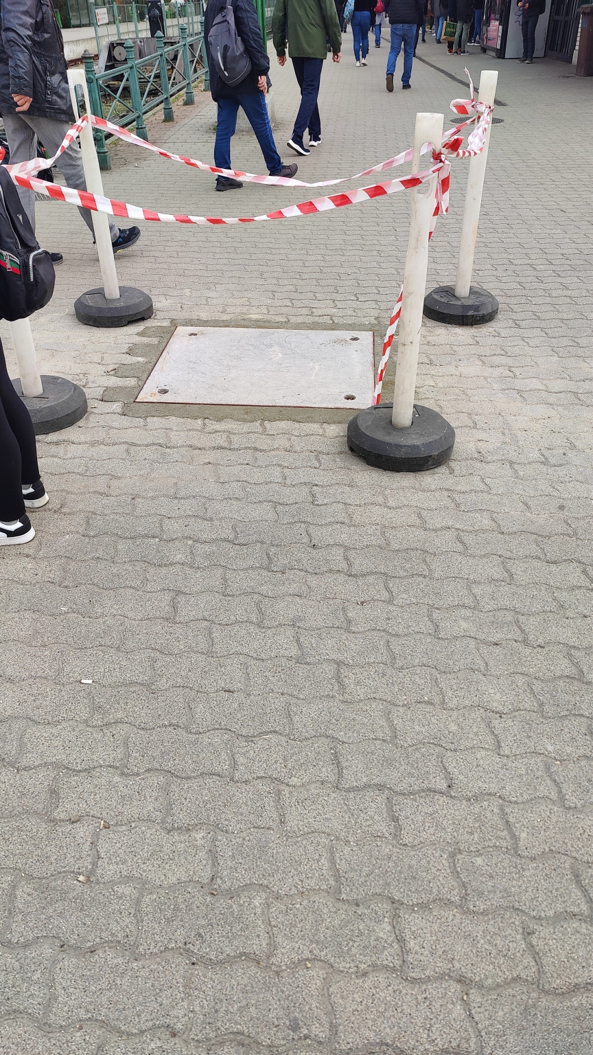 A Boráros téri hév végálomásnál már majdnem egy éve be van szakadva a csatorna fedél.