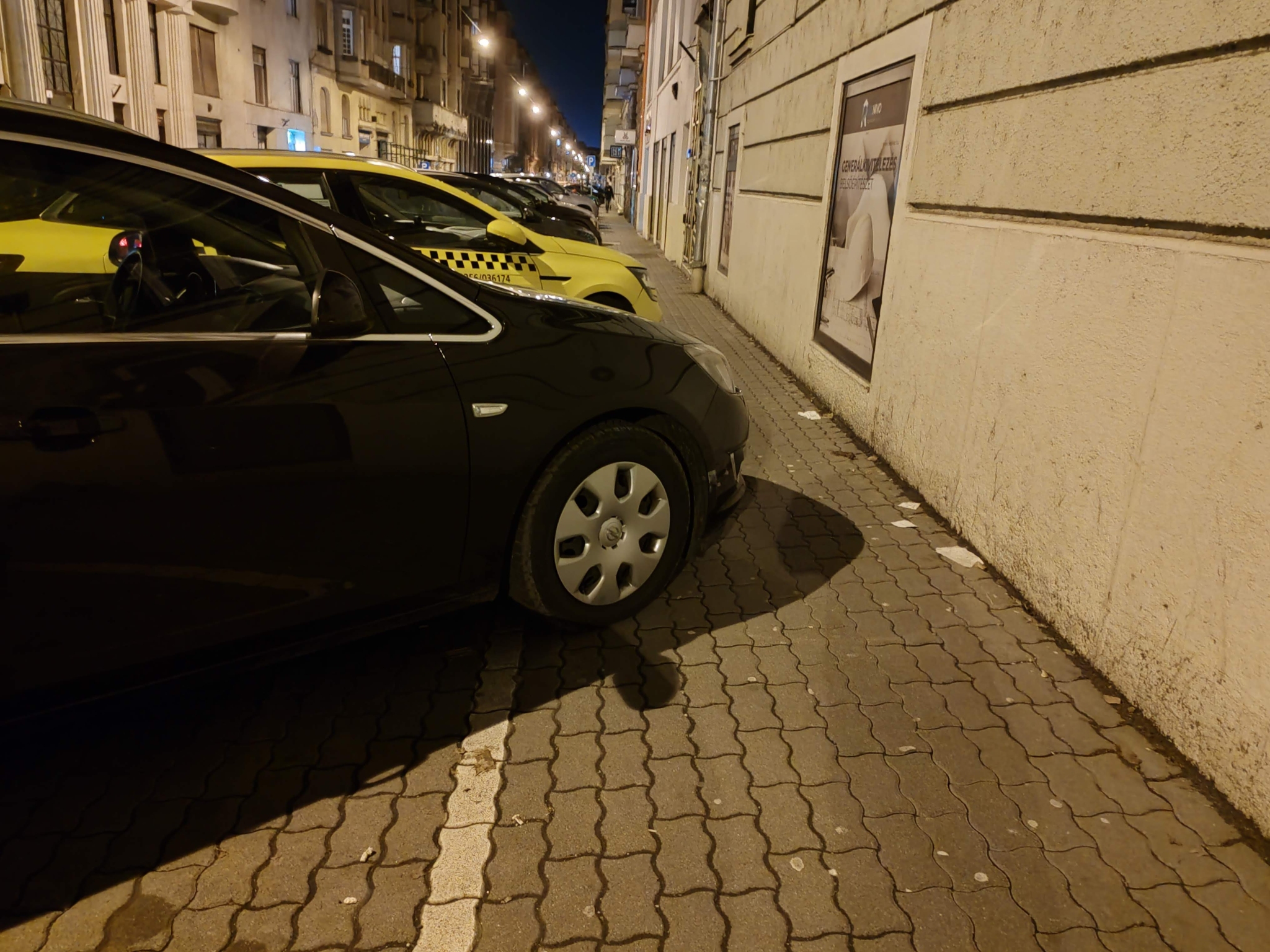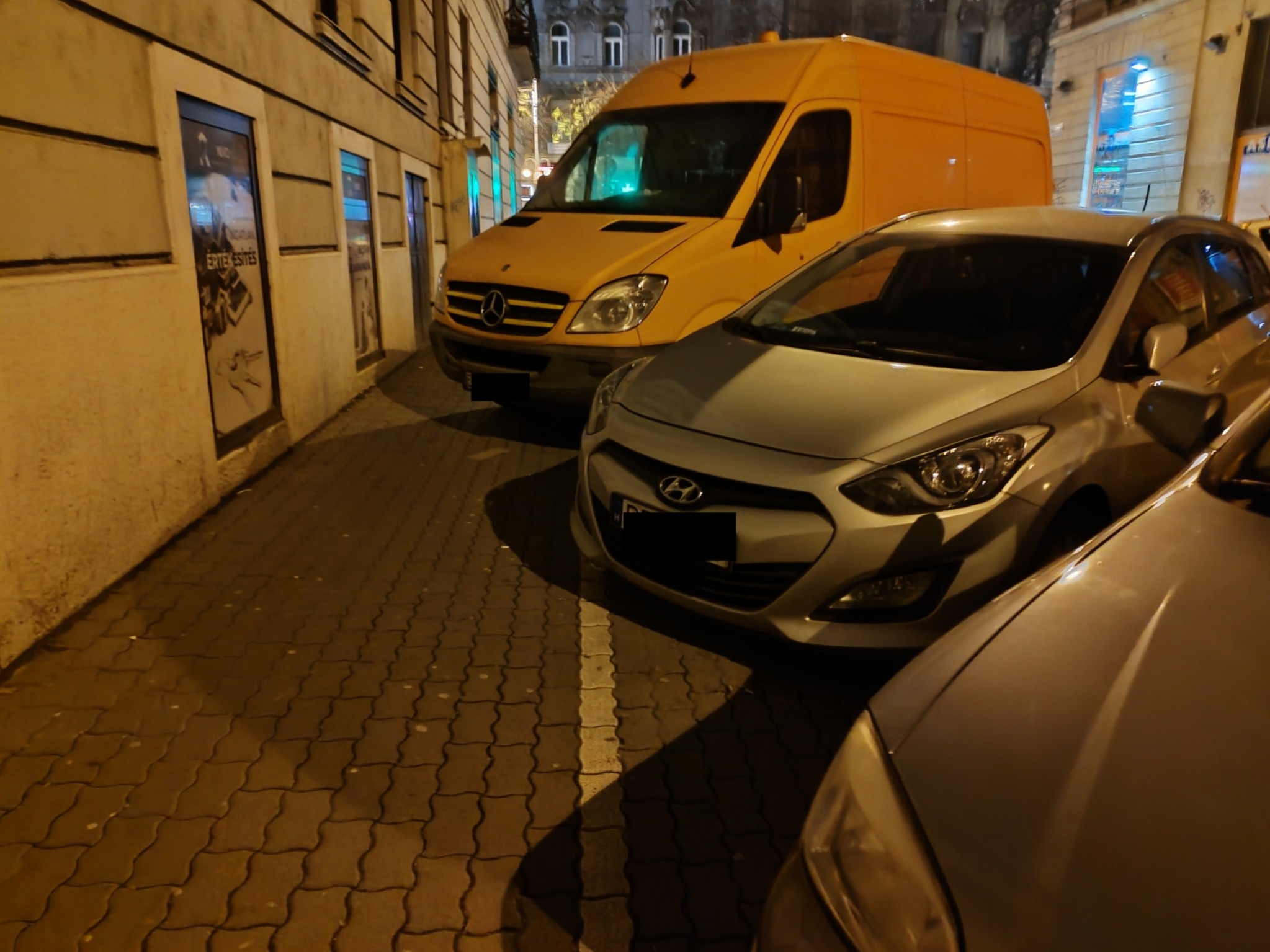 A kijelölt parkolóhelyeken a járművek rendszeresen a felfestett fehér vonalon jelentősen túlnyúlva parkolnak, ezzel a járdát a gyalogosok számára járhatatlanná szűkítik, a mellékelt fotókon is jól látható módokon. A falak menti számos fix elemek miatt a helyzet még kritikusabb!