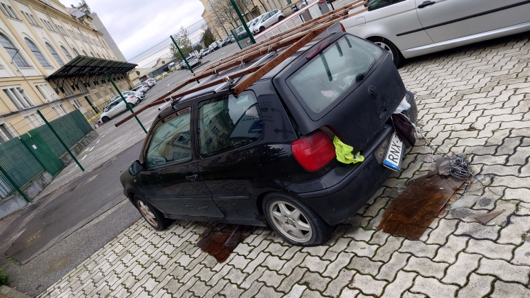 Parkolóhelyet foglal a Dreher előtt, üveg törmelék körülötte