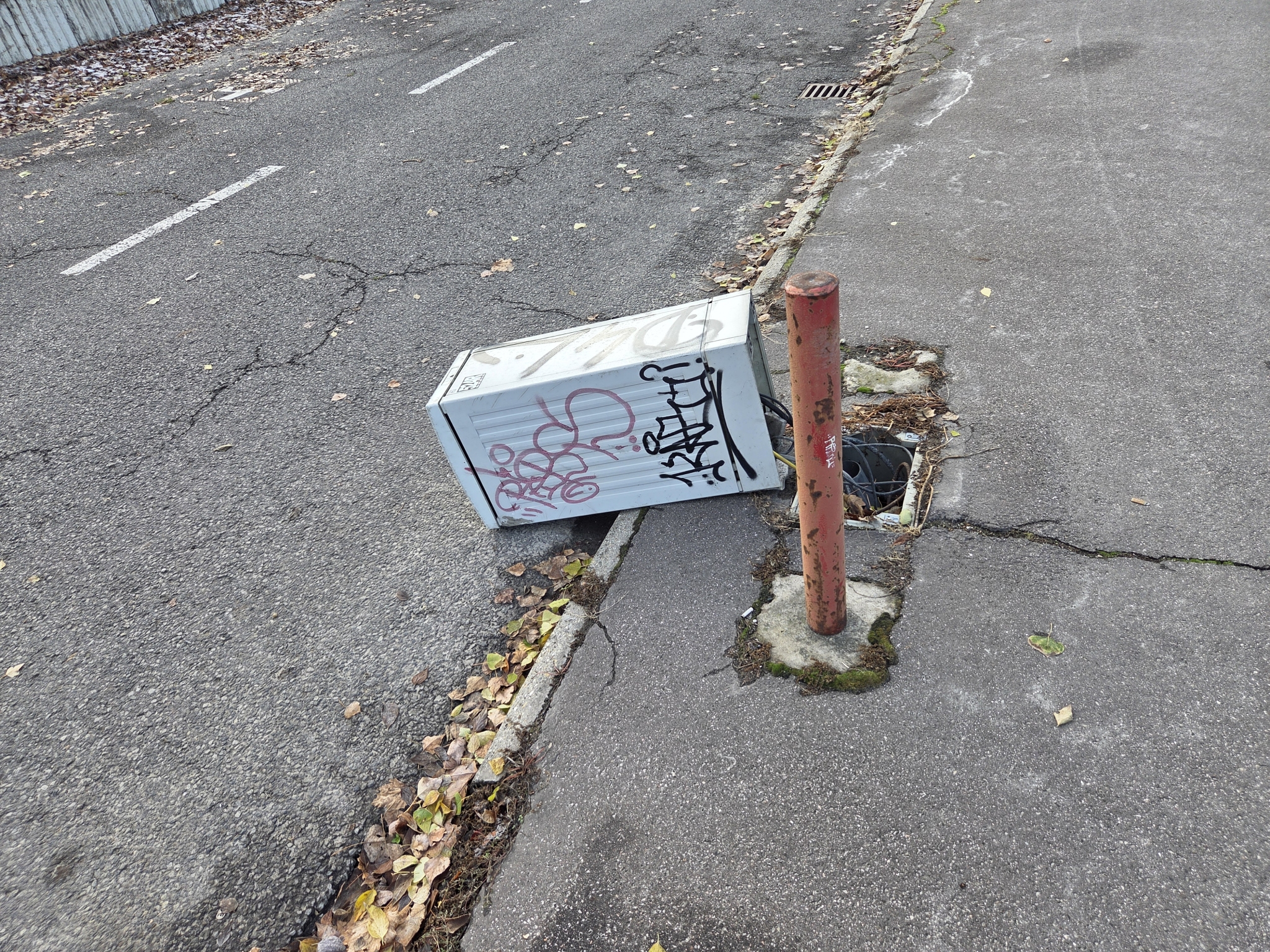 A kép magáért beszél, a kapcsolószekrény kiszakadt a helyéröl, a vezetékeket meg lehet érinteni