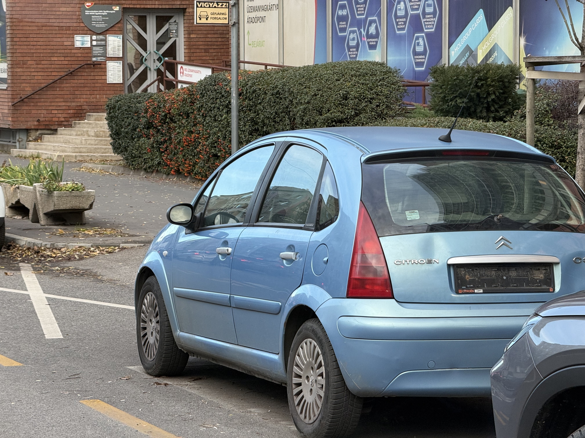450 Ft-os óránkénti parkolási díjért sincs hely. Közben meg ilyenek foglalják a helyet, mint ez a Citroen a MOL előtt.