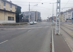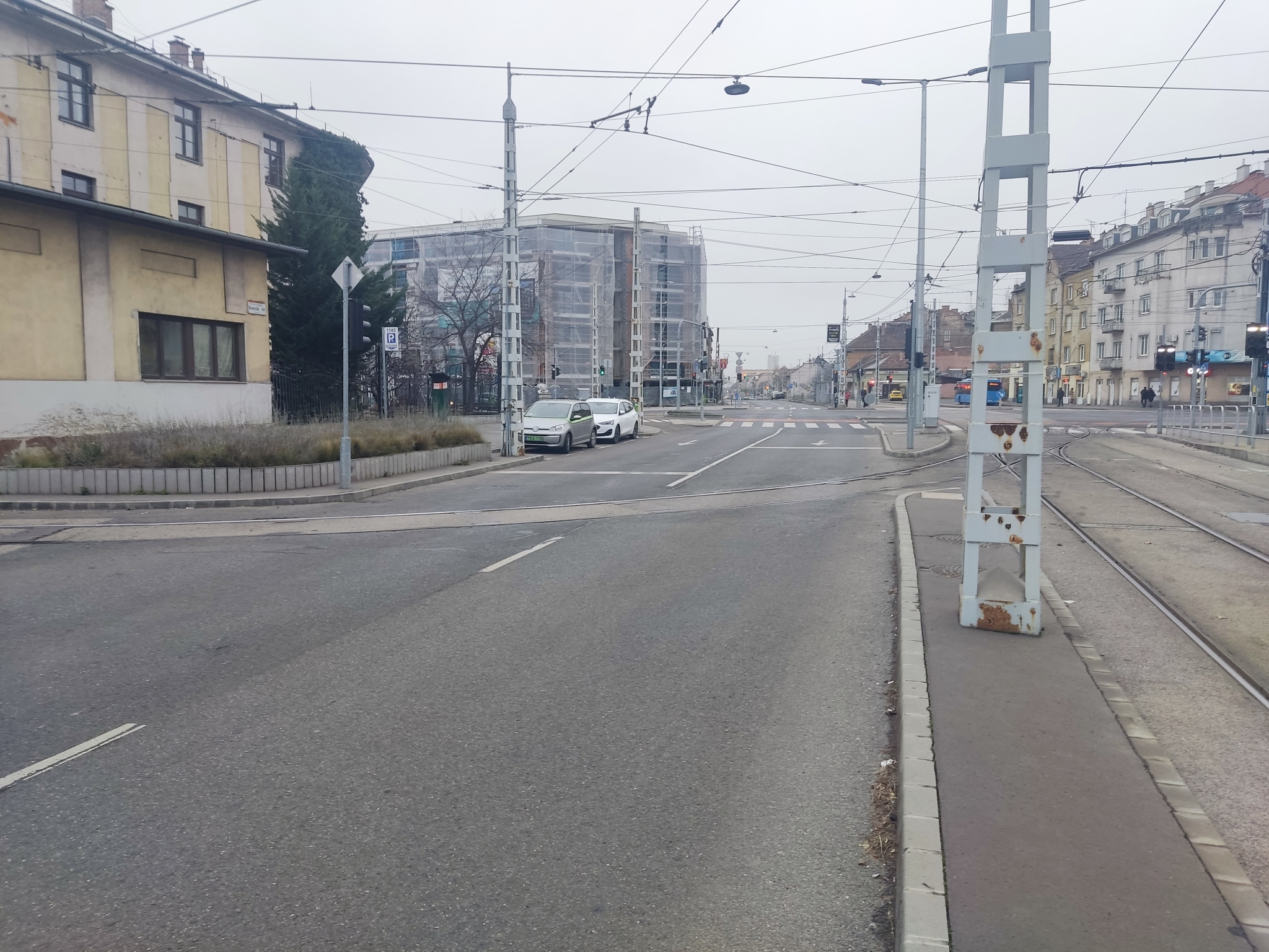 A bejelentésben említett sárga burkolati jel a Zenit projekt építéséhez kapcsolódó korábbi terelési állapotból kint maradt ideiglen...