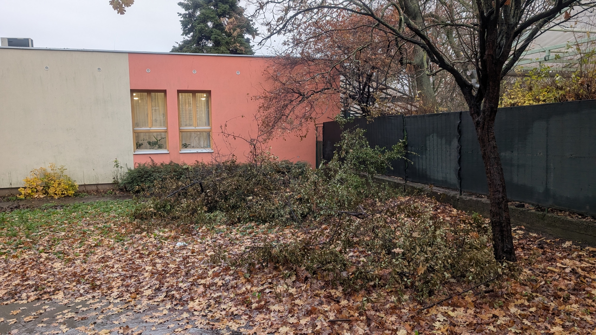 Levágott faágak az ovi mellett
