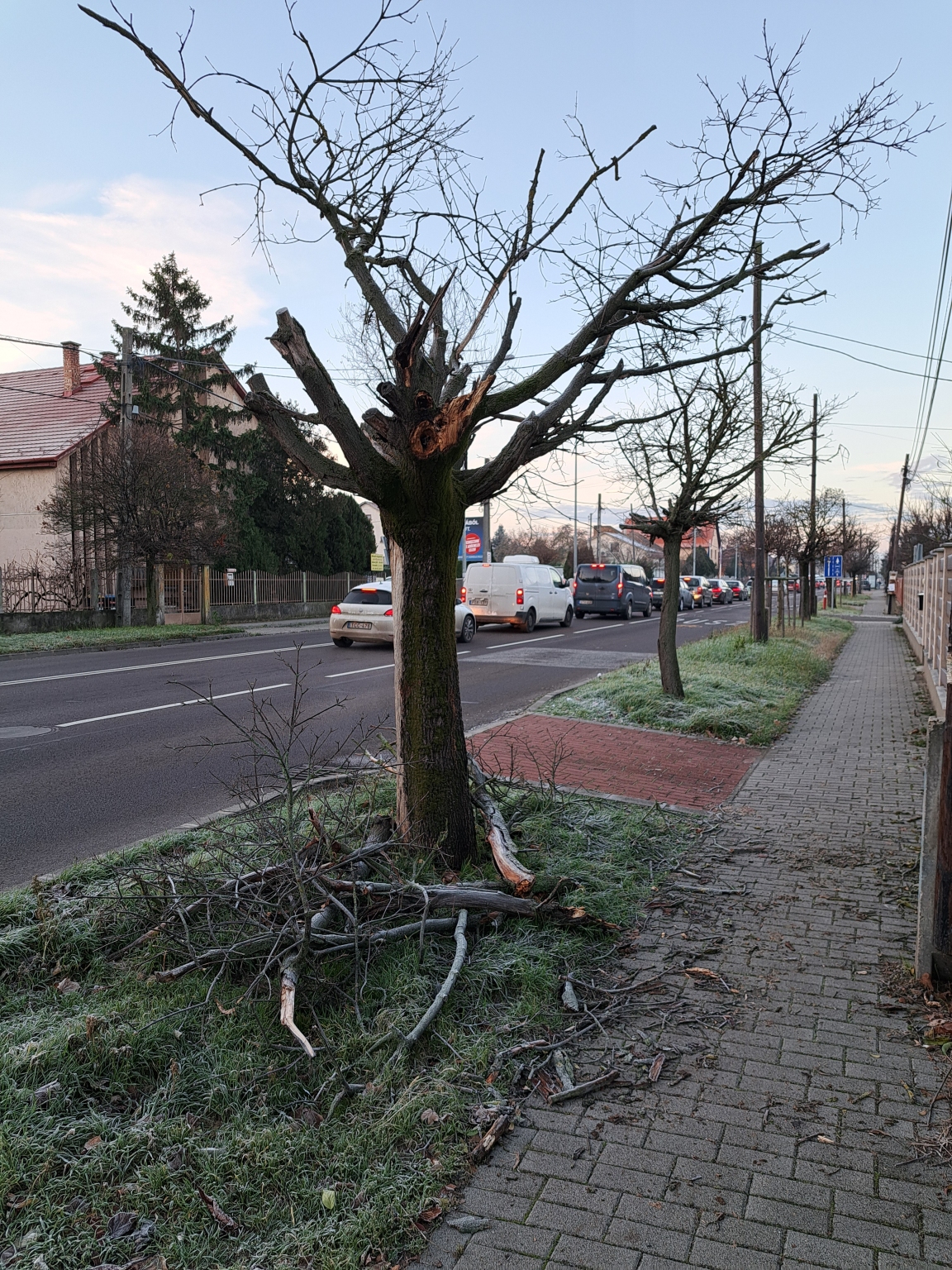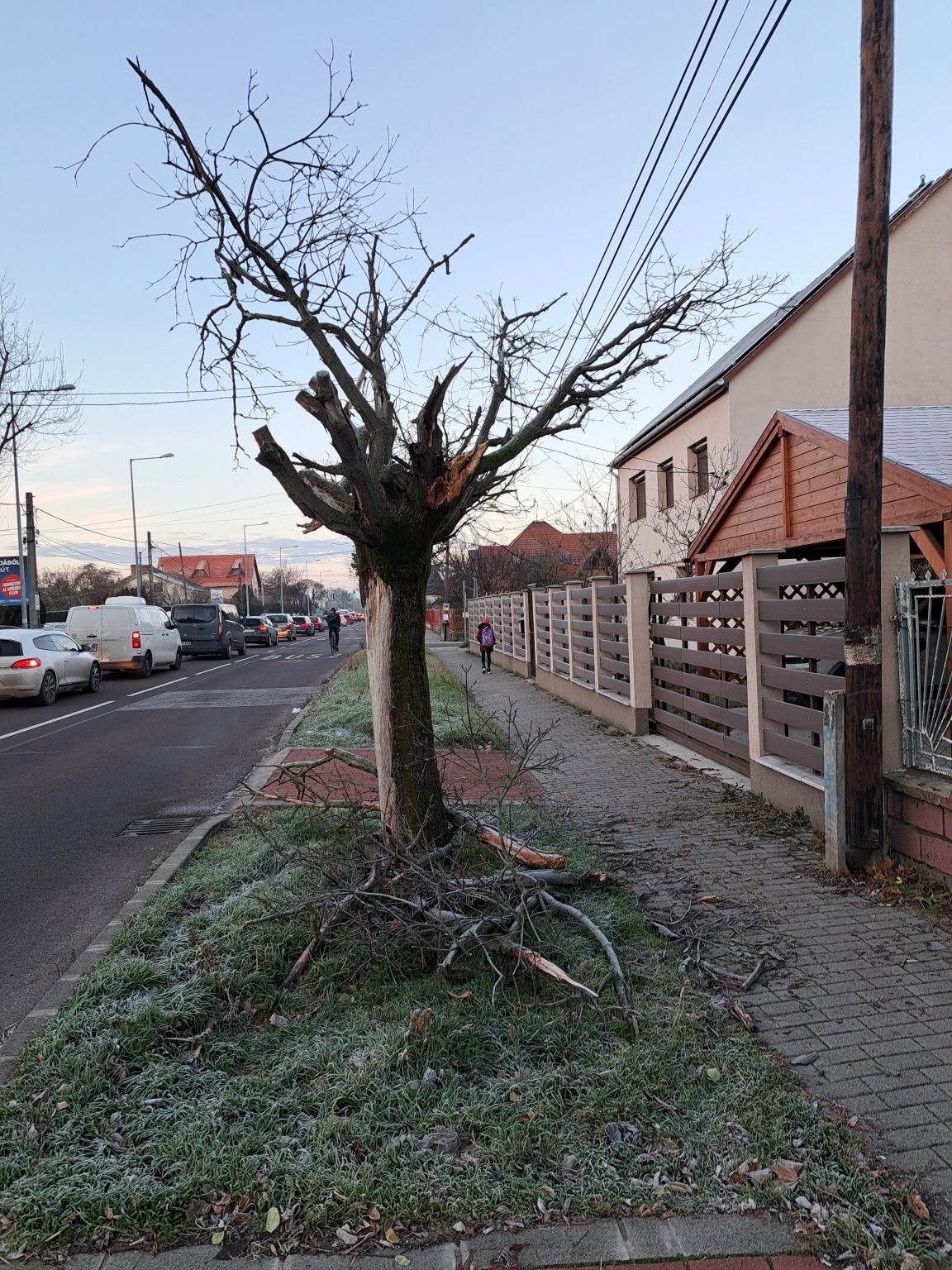Letört egy nagy faág, a törmelèk a járdán csúszós.
