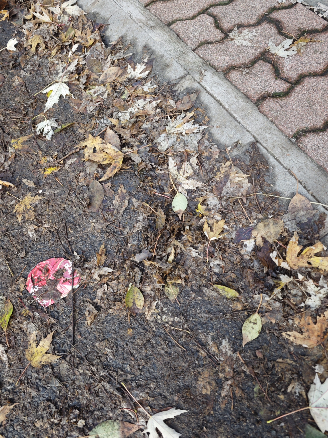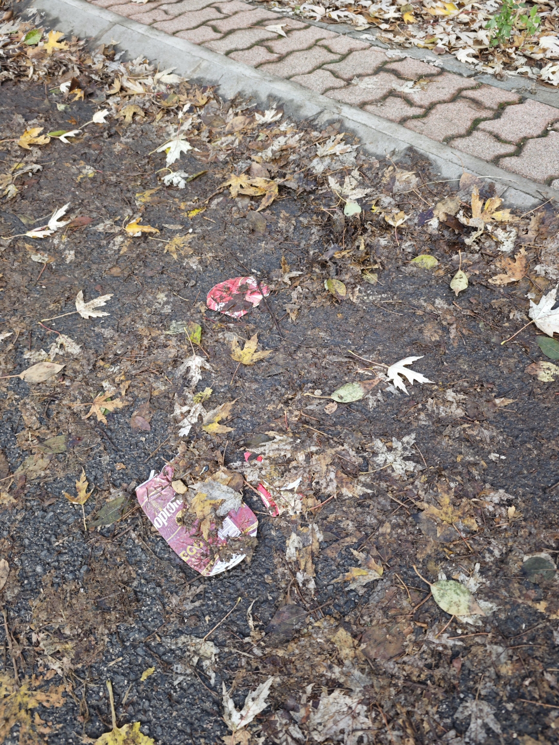 Üvegszilánkok a keskeny járdán és az úttest peremén, ahol a totyogók könnyen beleeshetnek, összenyomott és sérült alu dobozok az avarban, ami eleve egy csúszós nyálkás trutymó lett mostanra, amin könnyen borul a kismotor meg csúszik a csizma.