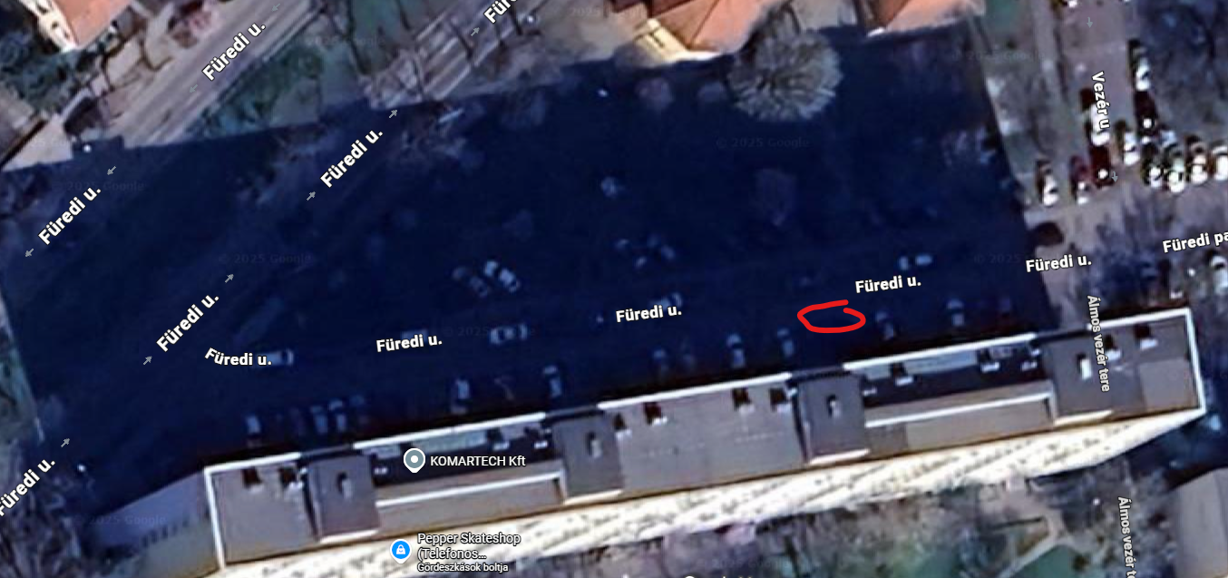 Füredi utca 11. szám alatt lévő társasház előtti úton van egy nagyobb kátyú, ez zavarja mind a parkolást mind az autóval és gyalogosan való közlekedést.