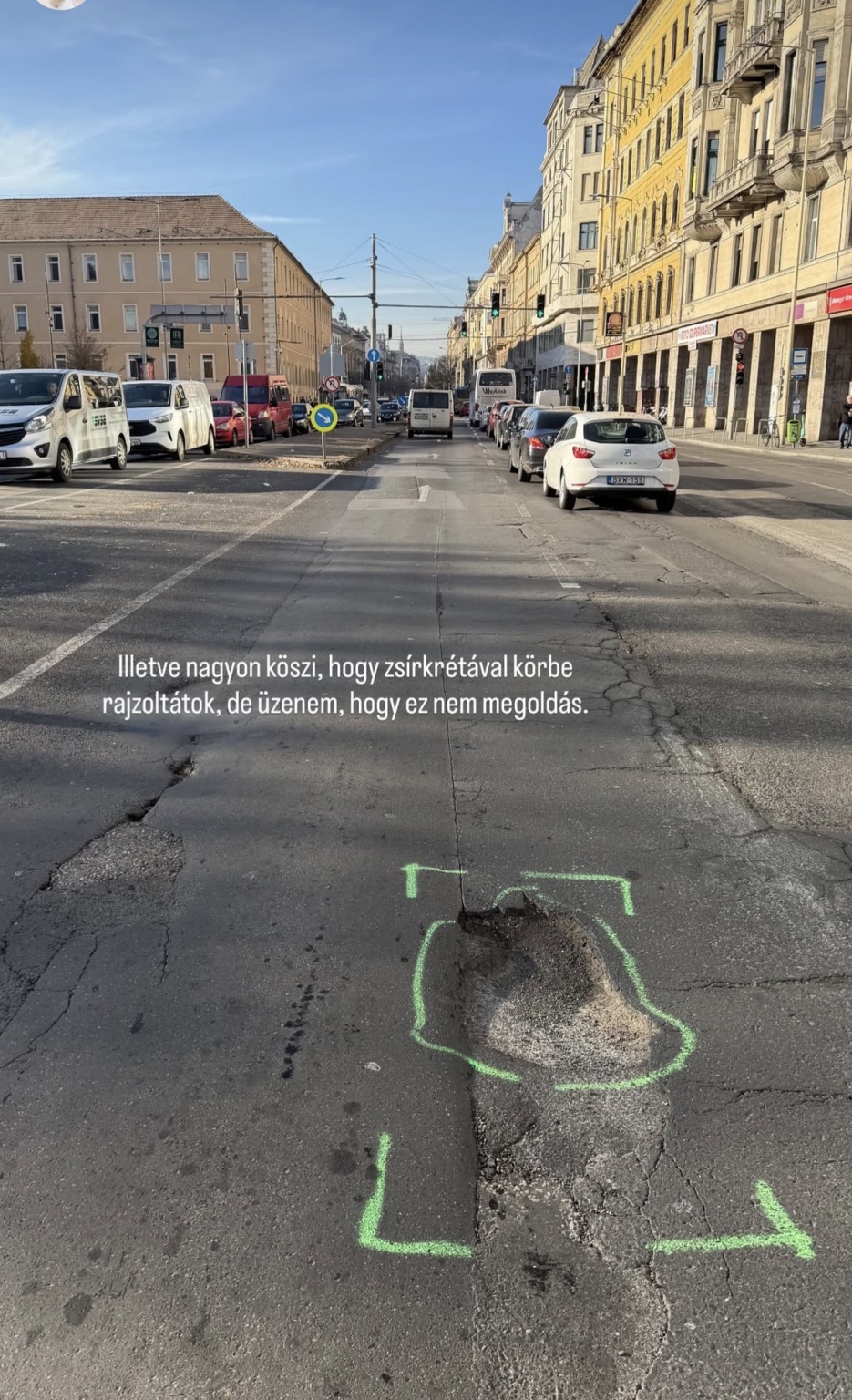 A Rákóczi úton olyan kátyú van a Blahánál, hogy dupla defektet csinált egy mercin