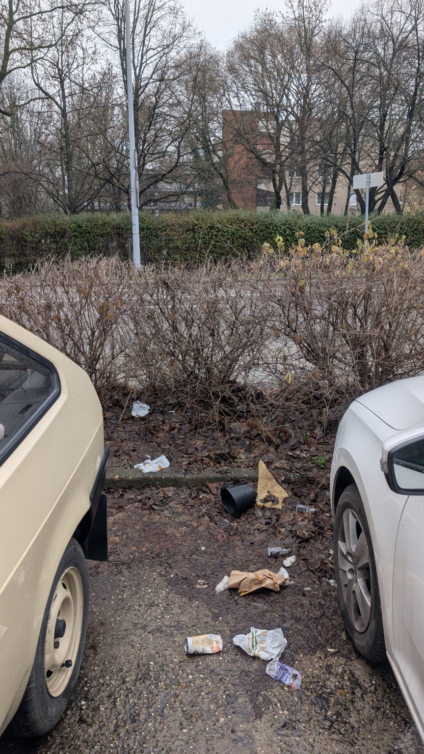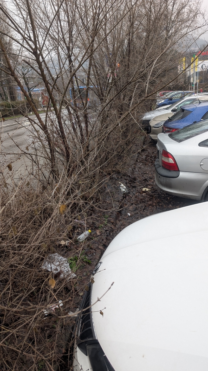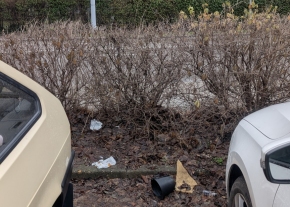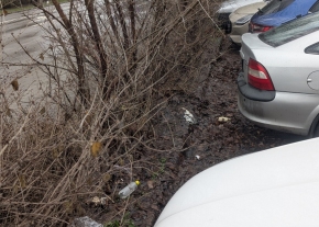 „A parkoló ismét (vagy továbbra is?) tele van szeméttel. Kérjük az illetékest, cselekedjék.”