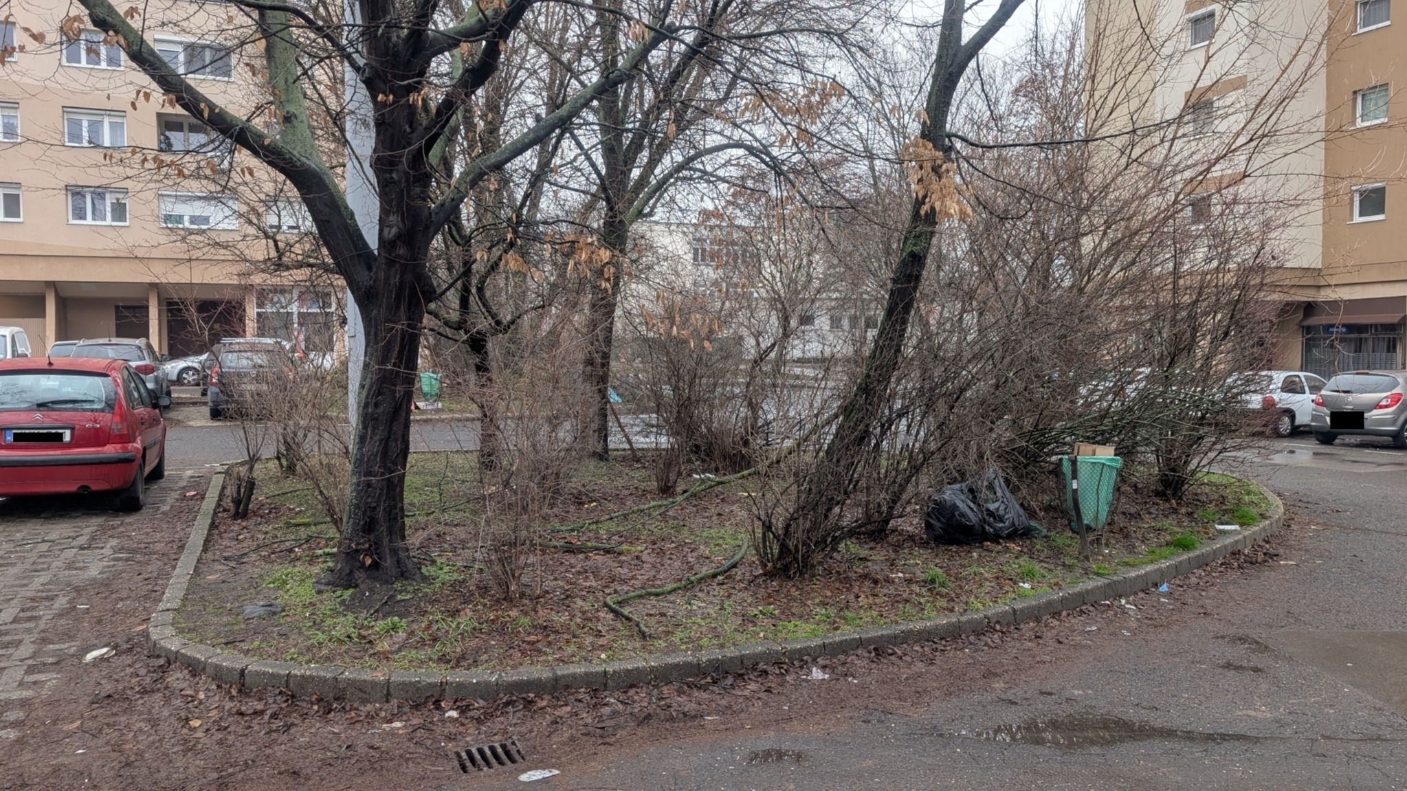 A Váradi u. 17-19. előtti parkoló takarításra szorul.