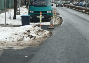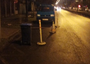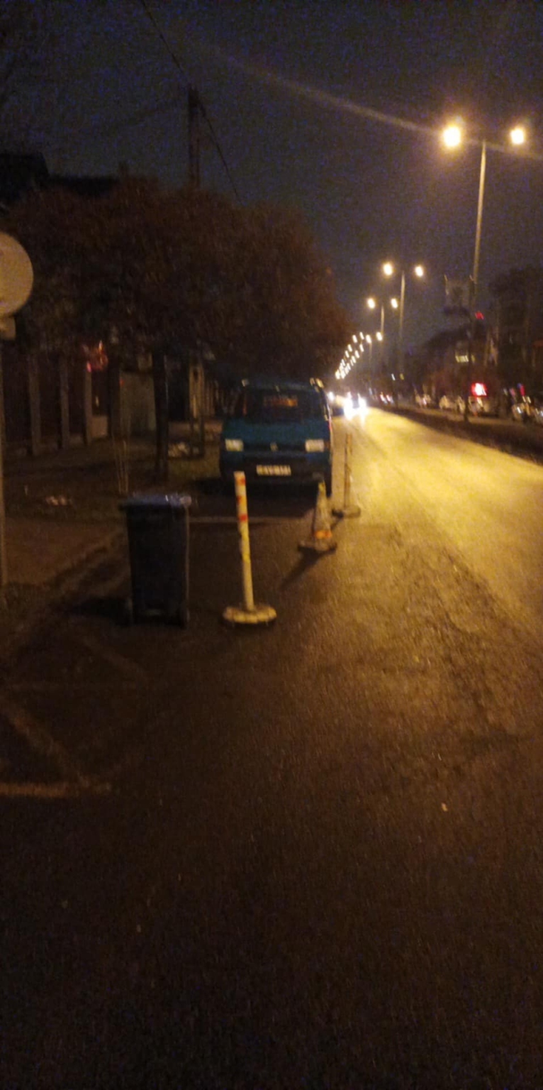 „Továbbra is megoldatlan az ügy! Felszólításra átmenetileg távolította el a közútra kitett bójákat, kukát és zsákot.