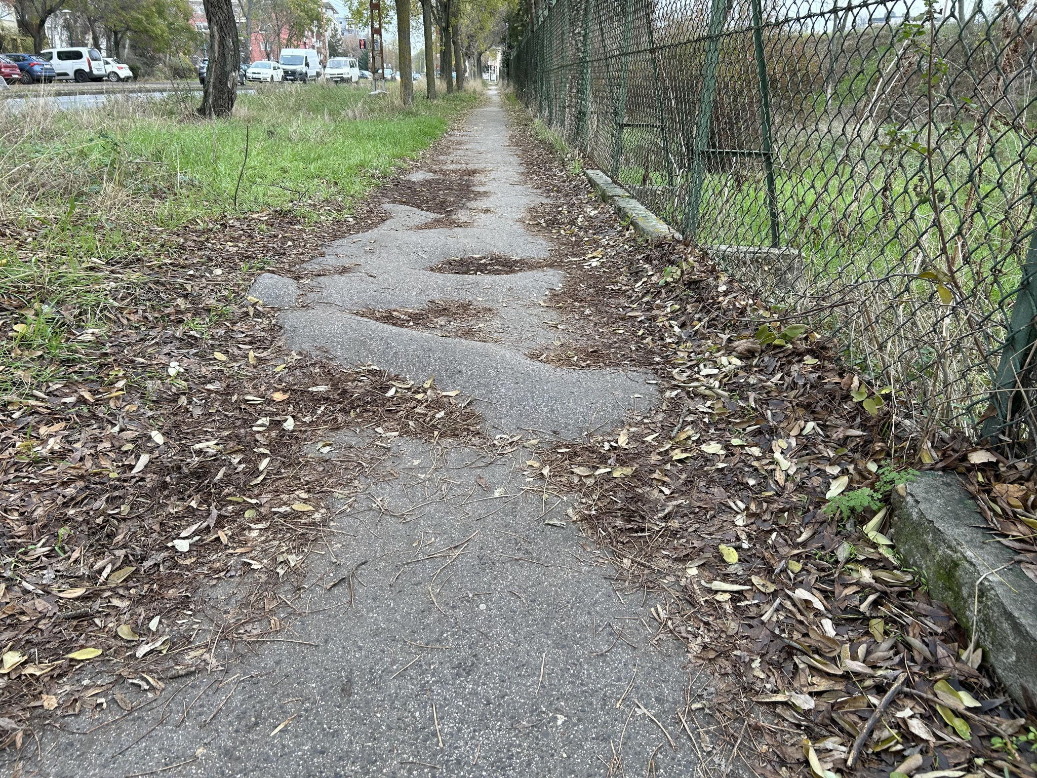 Balesetveszélyes járda az Egressy úton, a Róna és a Báróczy utca között