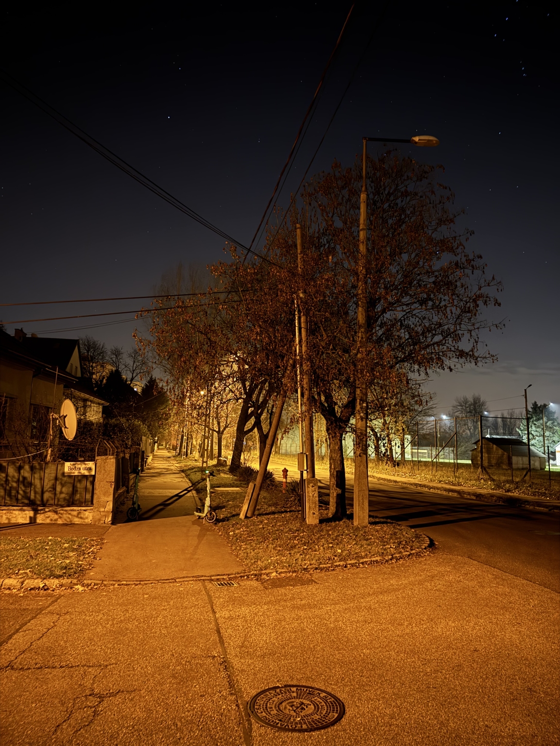 A Harmat utca / Bodza utca sarkán a lámpa nem világít.