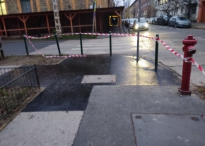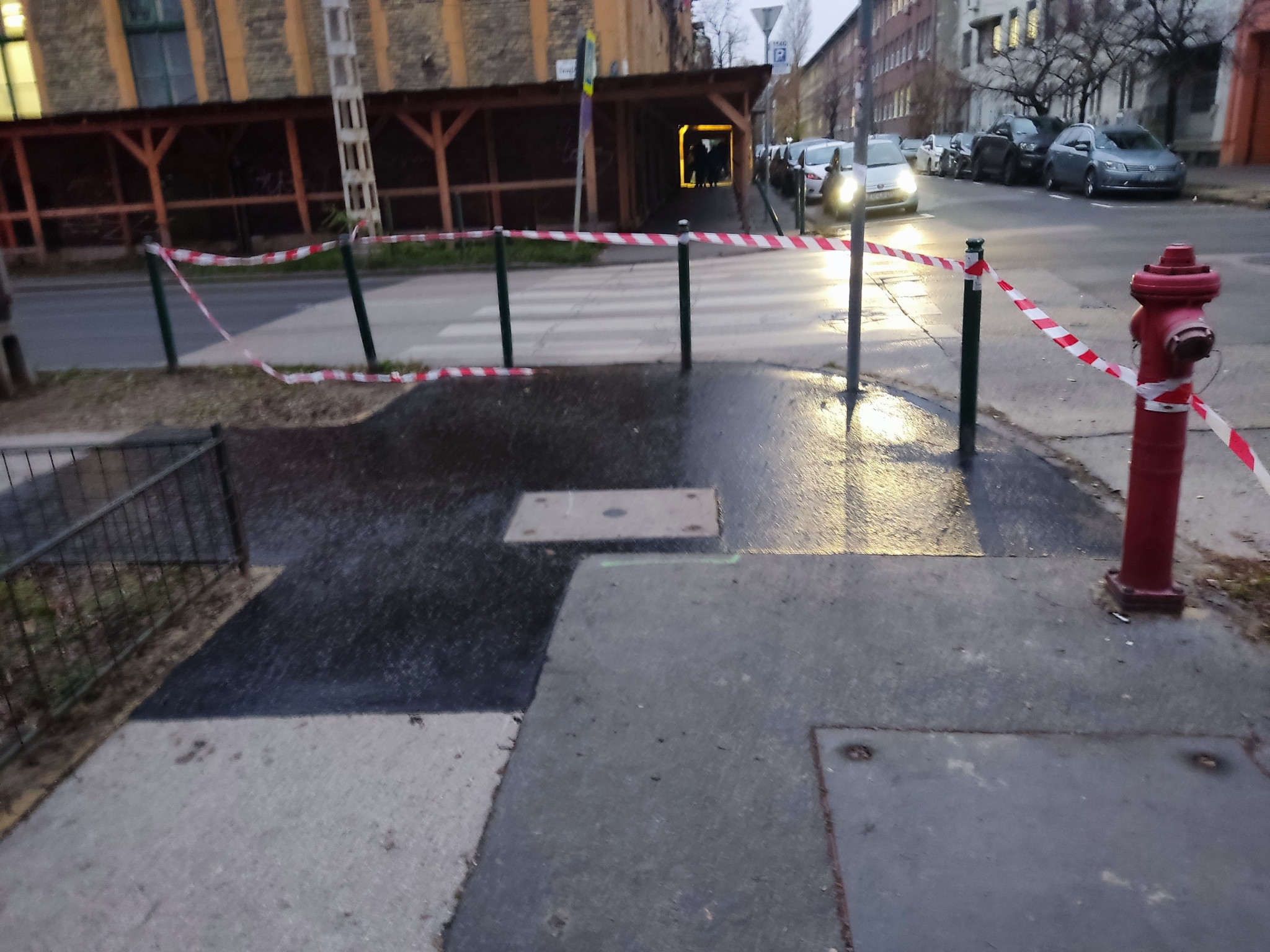 Hetek óta ilyen állapotban. Botlásveszélyes a szegélynél aknánál.
