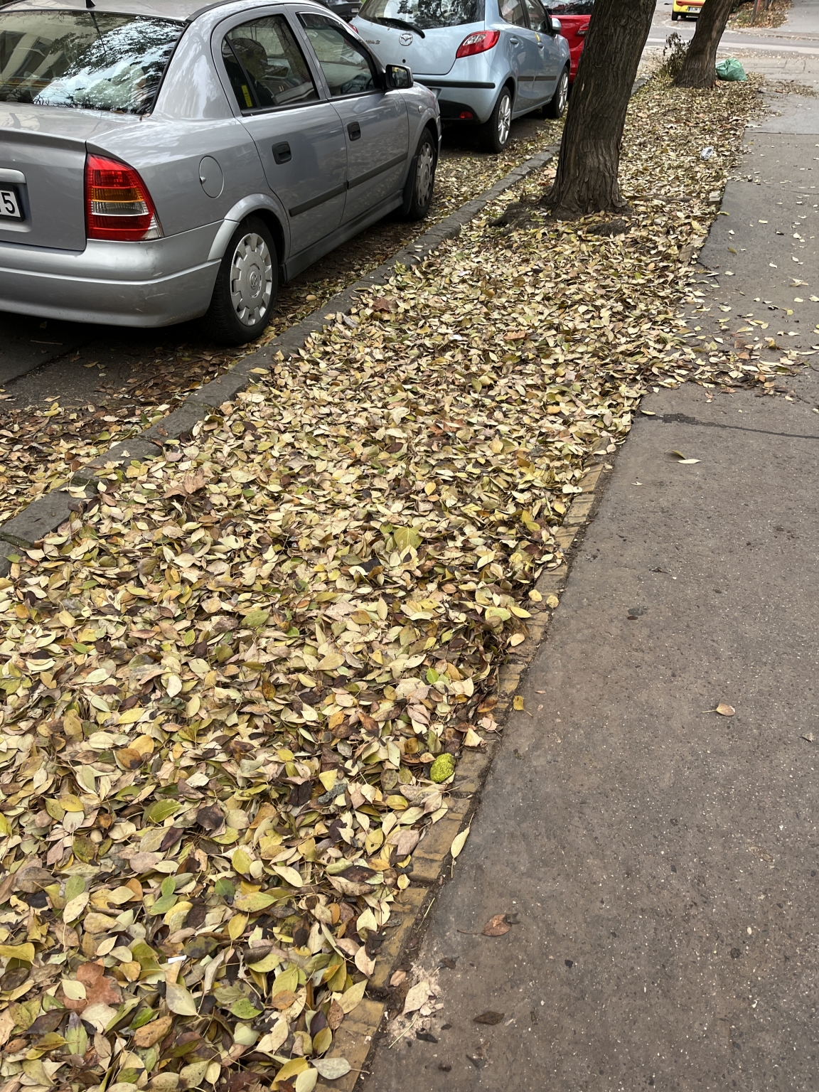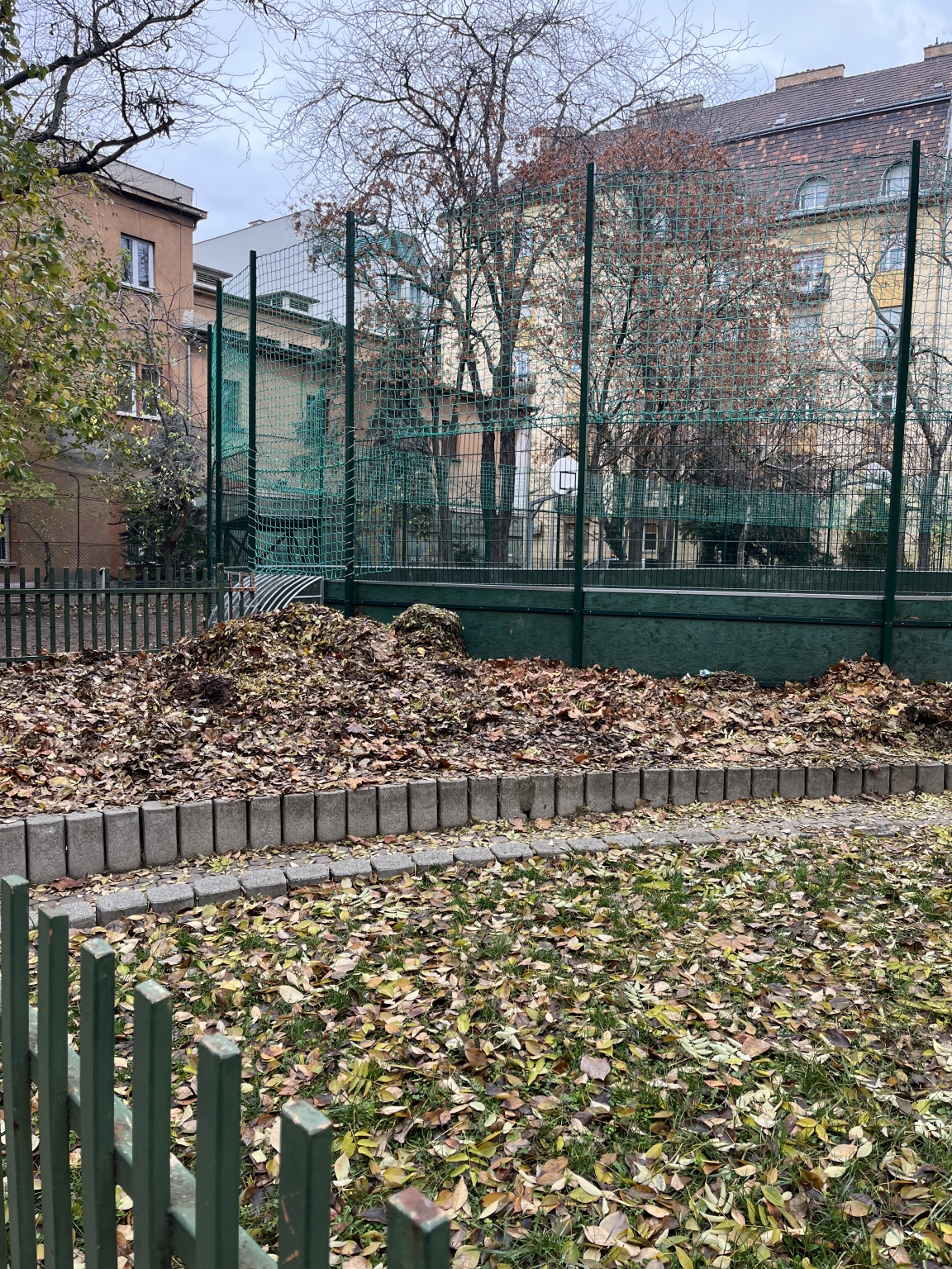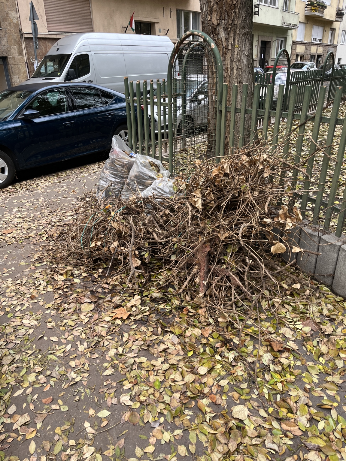 A 9. Tinódi, Liliom, Vaskapu, Gabona utca úttestein és járdáin illetve a fák alatti zöldfelületeken hetek óta gyűlik az avar, rohad, csúszik, belekeveredik a szemét. Egyszerűen undorítóan néz ki, és mivel csúszik, balesetveszélyes is. A Tinódi játszóteret minden reggel letakarítják lombfúvóval és gereblyével, ennek szemetét is egy kupacba gyűjtik a játszótér sarkán, ami lassan embermagasságú.