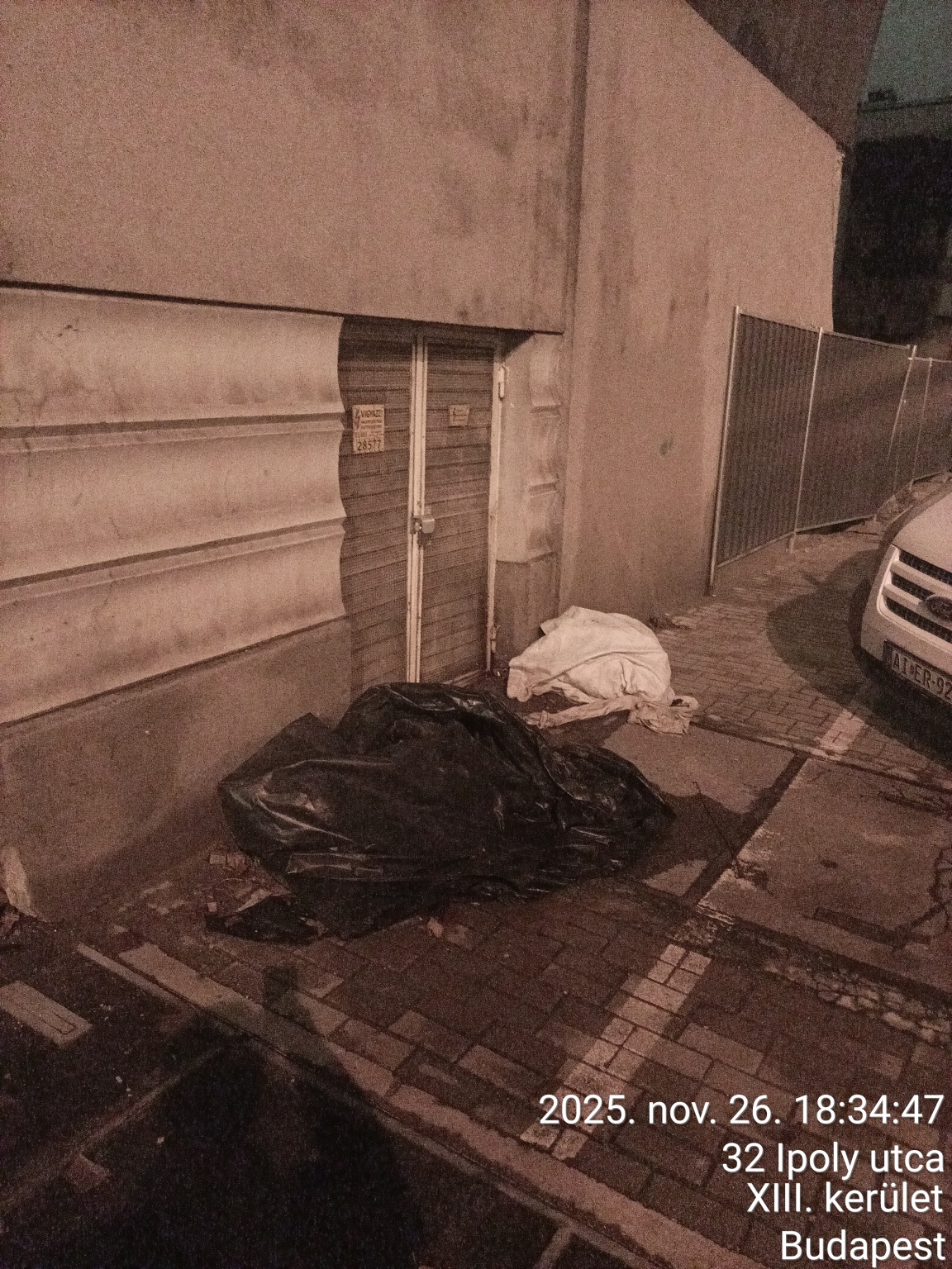 Az Ipoly utca Váci út felöli végén pár zsák szemét hever már hónapok óta. Az amúgy is nehezen járható járda ezen a részen még nehezebben hasznáható. Lásd csatolt kép