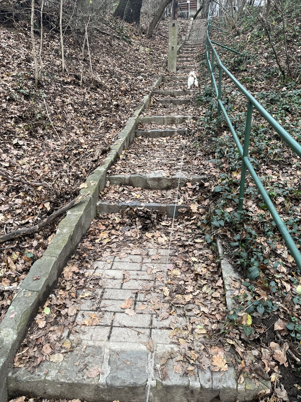A Denevér lépcsőt, amely Denevér utat köti össze a Mártonhegyi úttal, lehullott falevelek borítják, amelyek esőben rendkívül csúszóssá válnak, ezáltal baleseti kockázatot jelentenek. Magam is lefelé menet “leültem”, de nem önszántamból, ha értik, mire gondolok. Úgy gondolom, indokolt lenne a leveleket eltávolítani az útról.