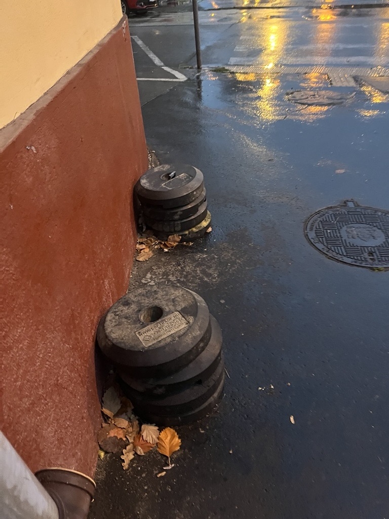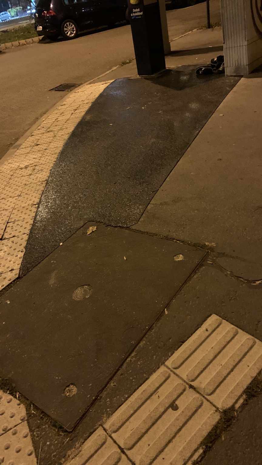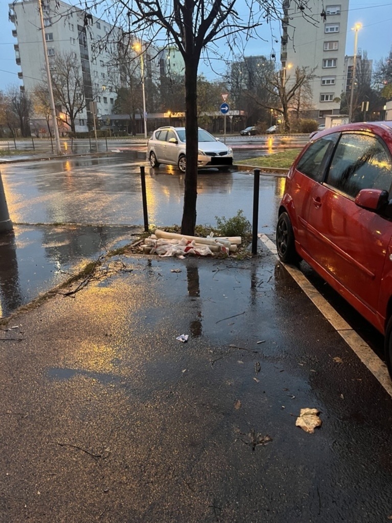 Az Egry József utca - Irinyi József utca sarkán valamilyen közművet szereltek. A felbontást majd újra aszfaltozást követően a talpakat a ház tövében, a műanyag oszlopokat pedig a fa alatt hagyták. Kérem, szállítsák el azokat.